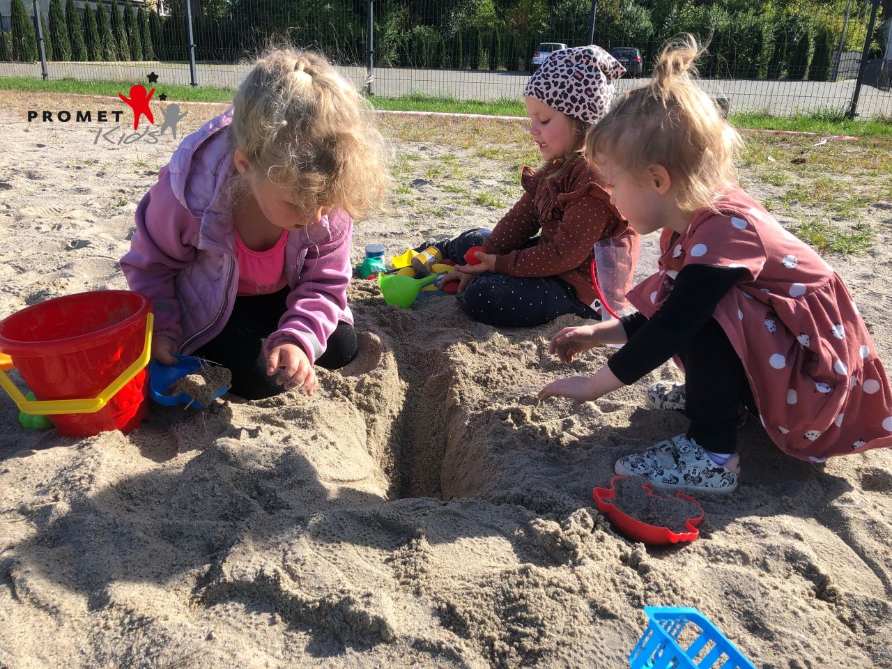 Pomieszczenie nie jest jednak jedynym miejscem, w którym podopieczni Promet Kids wspólnie spędzają czas. Opierając się na modelu skandynawskich opiekunowie starają się bowiem spędzać sporą część dnia na świeżym powietrzu. Ułatwia to przestrzenny teren przed przedszkolem, znajdujące się na nim boisko i plac zabaw, a także możliwość spacerów do pobliskich terenów leśnych, gdzie rozegrała się już niejedna dziecięca przygoda!