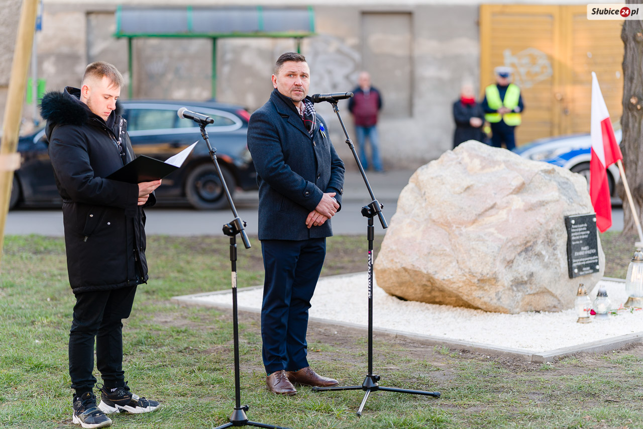 Podziękował również inicjatorom. – W tej sprawie było wiele dyskusji, zarówno wśród radnych, jak i mieszkańców Słubic. Ostatecznie decyzja została podjęta i mamy plac Żołnierzy Wyklętych w naszym mieście - dodał. Burmistrz nawiązał także do obecnej sytuacji politycznej i wojnie na Ukrainie. Zachęcił wszystkich do włączenia się w akcję pomocy.