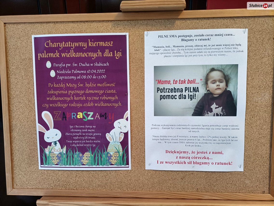 Za nami kolejna akcja charytatywna na rzecz chorej na SMA Igi Czekalskiej. Tym razem był to kiermasz palm wielkanocnych, który miał miejsce w Kościele Ducha Świętego w Słubicach. Łącznie zebrano ponad 19 tys. zł.
