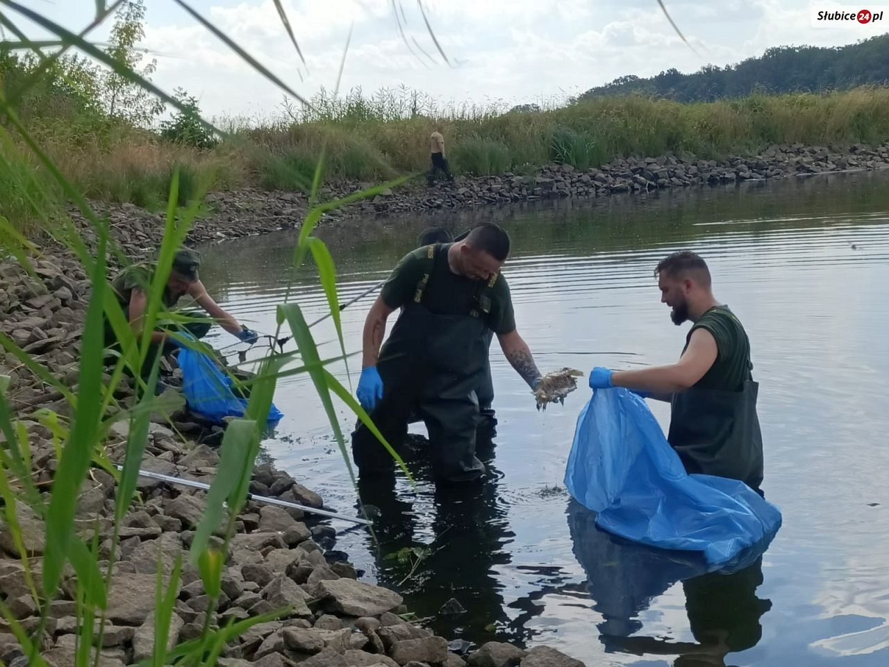 W zbieraniu śniętych ryb w rejonie Słubic biorą udział strażacy z Państwowej i Ochotniczej Straży Pożarnej, żołnierze 12. Wielkopolskiej Brygady Obrony Terytorialnej oraz członkowie Społecznej Straży Rybackiej, wśród których są też osoby zrzeszone w kołach Polskiego Związku Wędkarskiego.