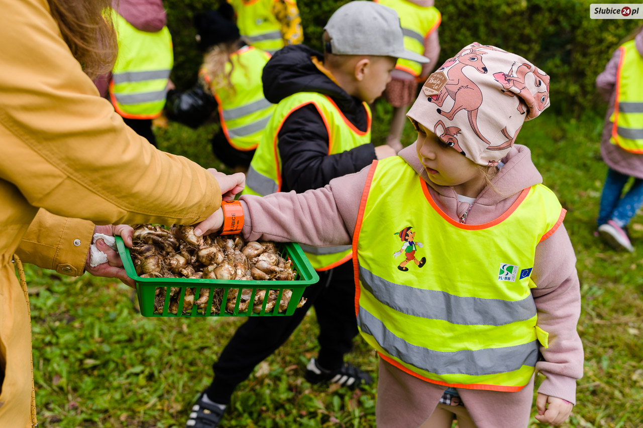 Po krótkim instruktażu, jak sadzić żonkile, wolontariusze ruszyli do pracy. Przy słonecznej pogodzie i w dobrej atmosferze praca szła szybko i sprawnie. Do przygotowanych wcześniej dołków w kilkanaście minut trafiło 1000 cebulek kwiatów. Na zakończenie mali i duzi wolontariusze otrzymali słodki poczęstunek.