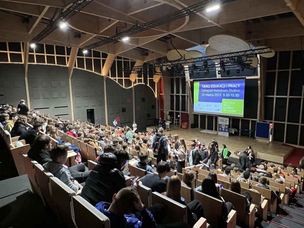 22 marca Collegium Polonicum było gospodarzem XI edycji Targów Edukacji i Pracy pt. „EDUKACJA – PRACA – KARIERA bez granic”. Ta coroczna impreza, skierowana głównie do młodzieży szkolnej, wróciła w mury słubickiej uczelni po pandemicznej przerwie. I zaskoczyła wysoką frekwencją.
