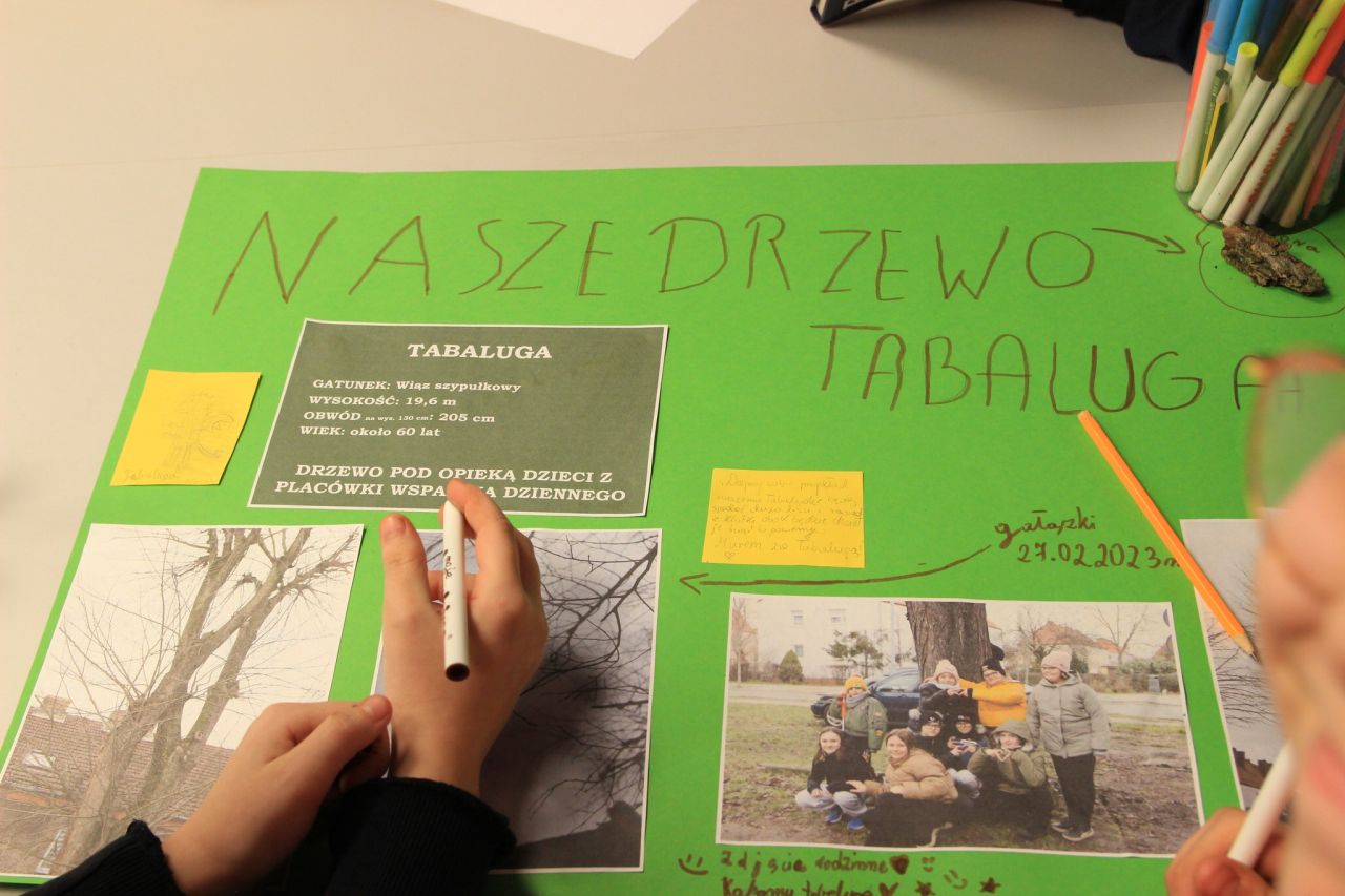 20 marca dzieci i ich opiekunka ponownie wybrali się odwiedzić drzewo. Byli dobrze przygotowani. Powiesili na nim przygotowaną wcześniej tabliczkę z imieniem i wymiarami. I zadeklarowali, że będą odwiedzać drzewo co miesiąc i sprawdzać jak się zmienia.