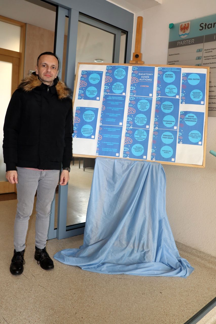 A dlaczego na tablicy dominuje barwa niebieska? - Otóż kolorem tym wyrażamy swoją solidarność z osobami z autyzmem – wyjaśnia Wojciech Obremski, rzecznik prasowy starostwa.