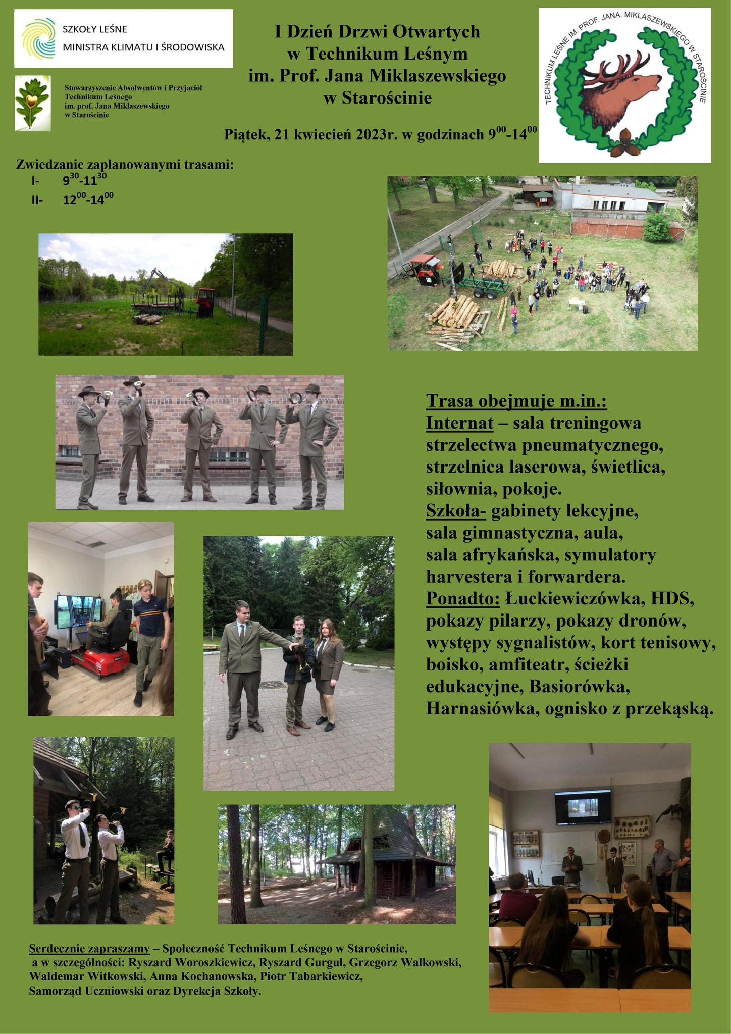 21 kwietnia Technikum Leśne w Starościnie zaprasza wszystkich chętnych na dzień otwartych drzwi. Na przyszłych uczniów będzie czekać nie tylko zwiedzanie szkoły i szkolnych obiektów, ale i dodatkowe atrakcje, w tym ognisko z przekąską.