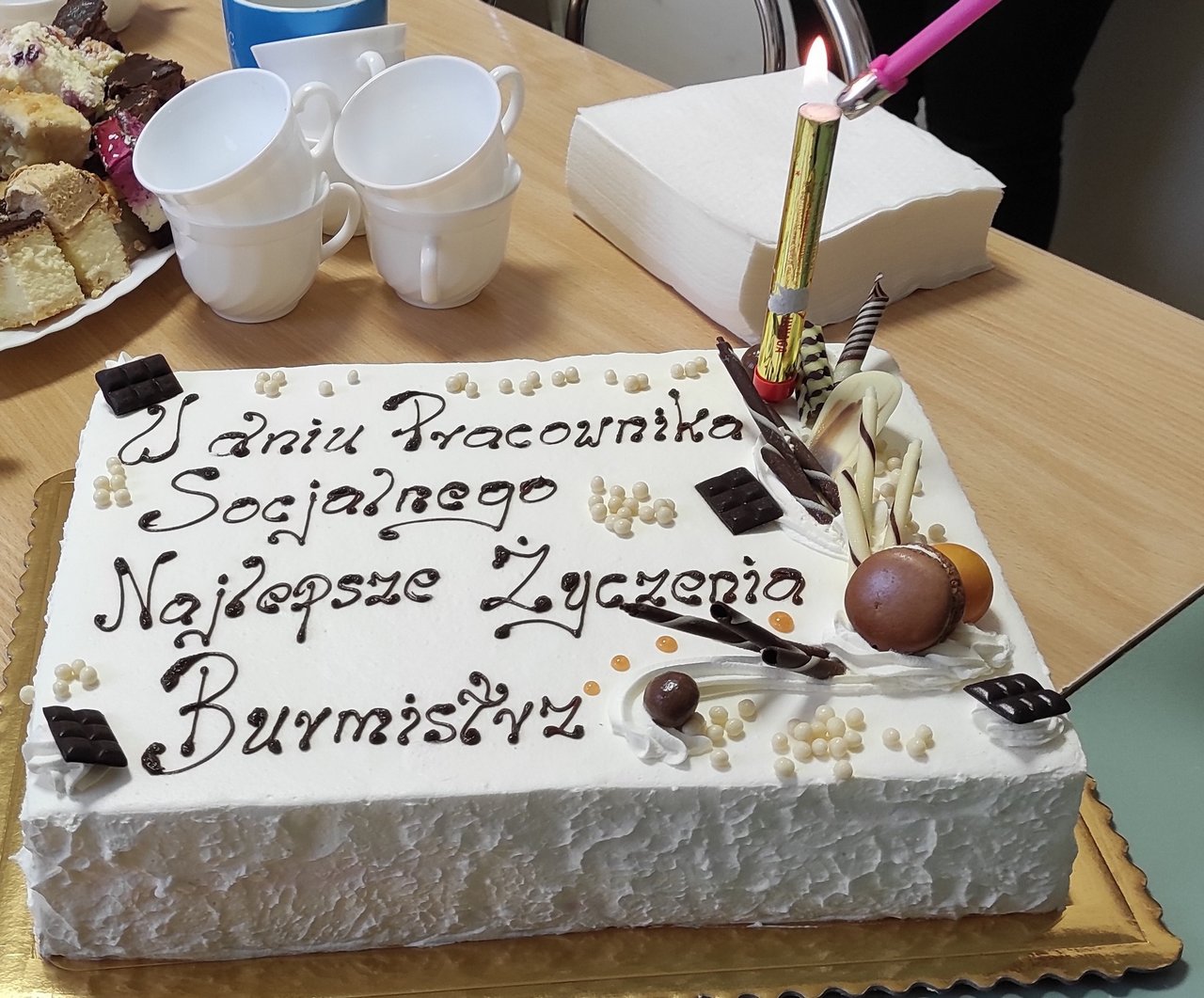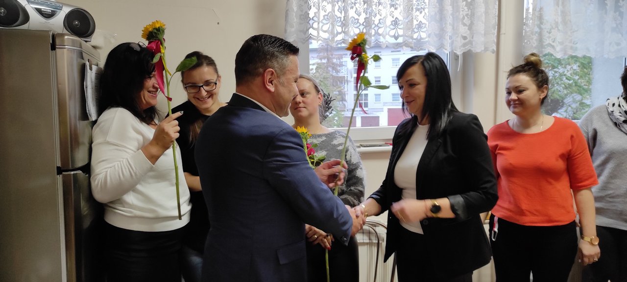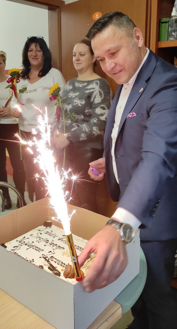 Z kolei burmistrz Słubic M. Olejniczak odwiedził Ośrodek Pomocy Społecznej. W prezencie przyniósł tort i złożył pracownicom życzenia:
