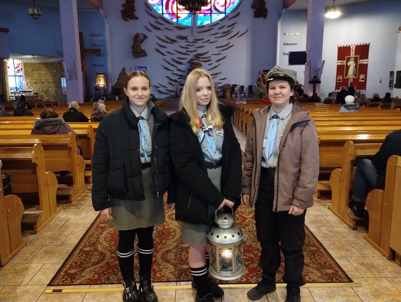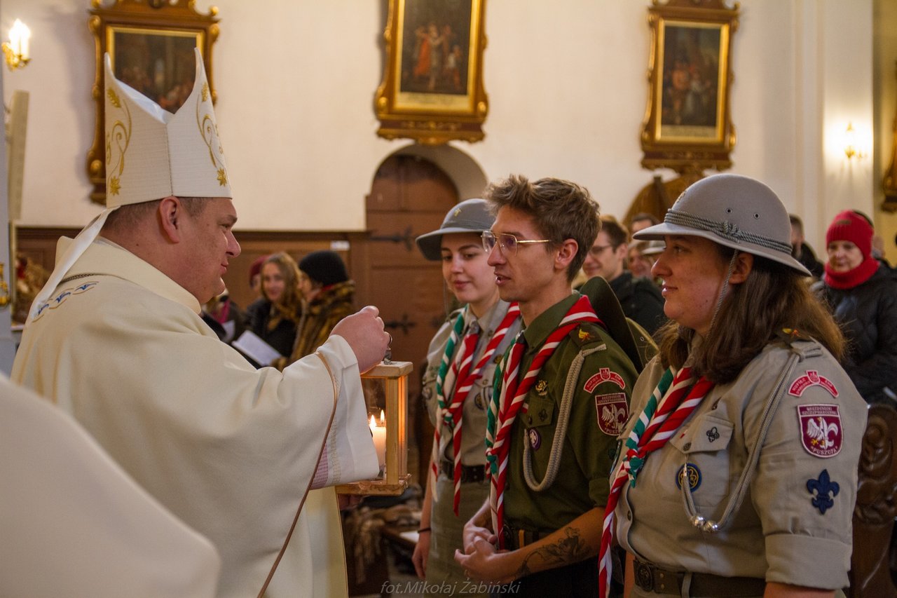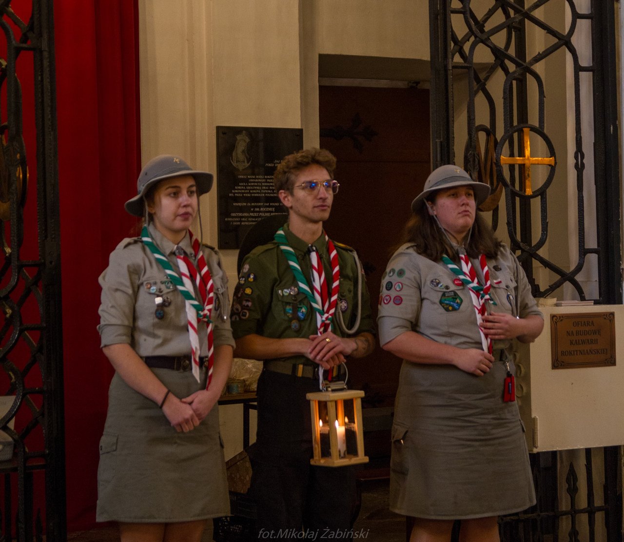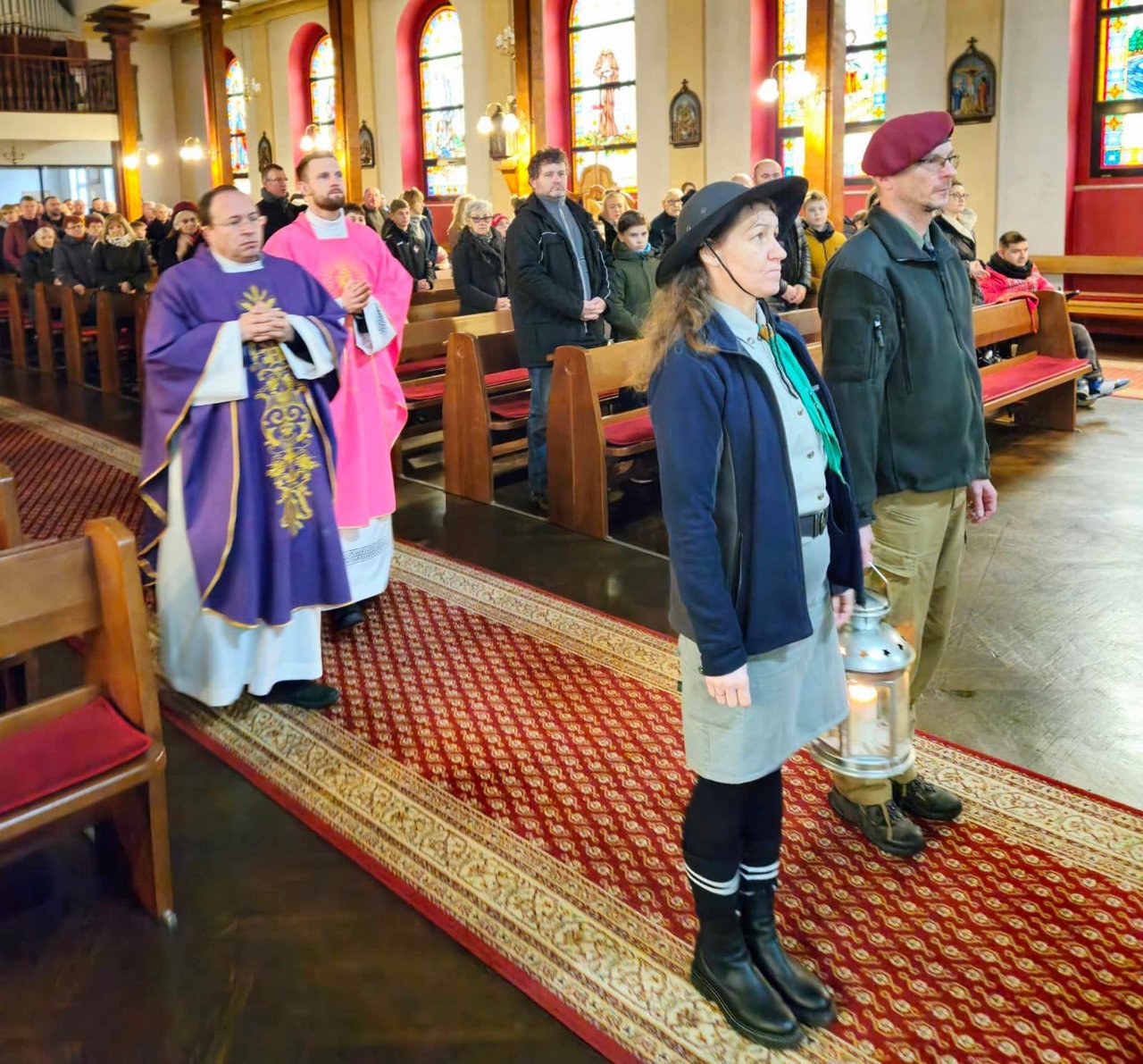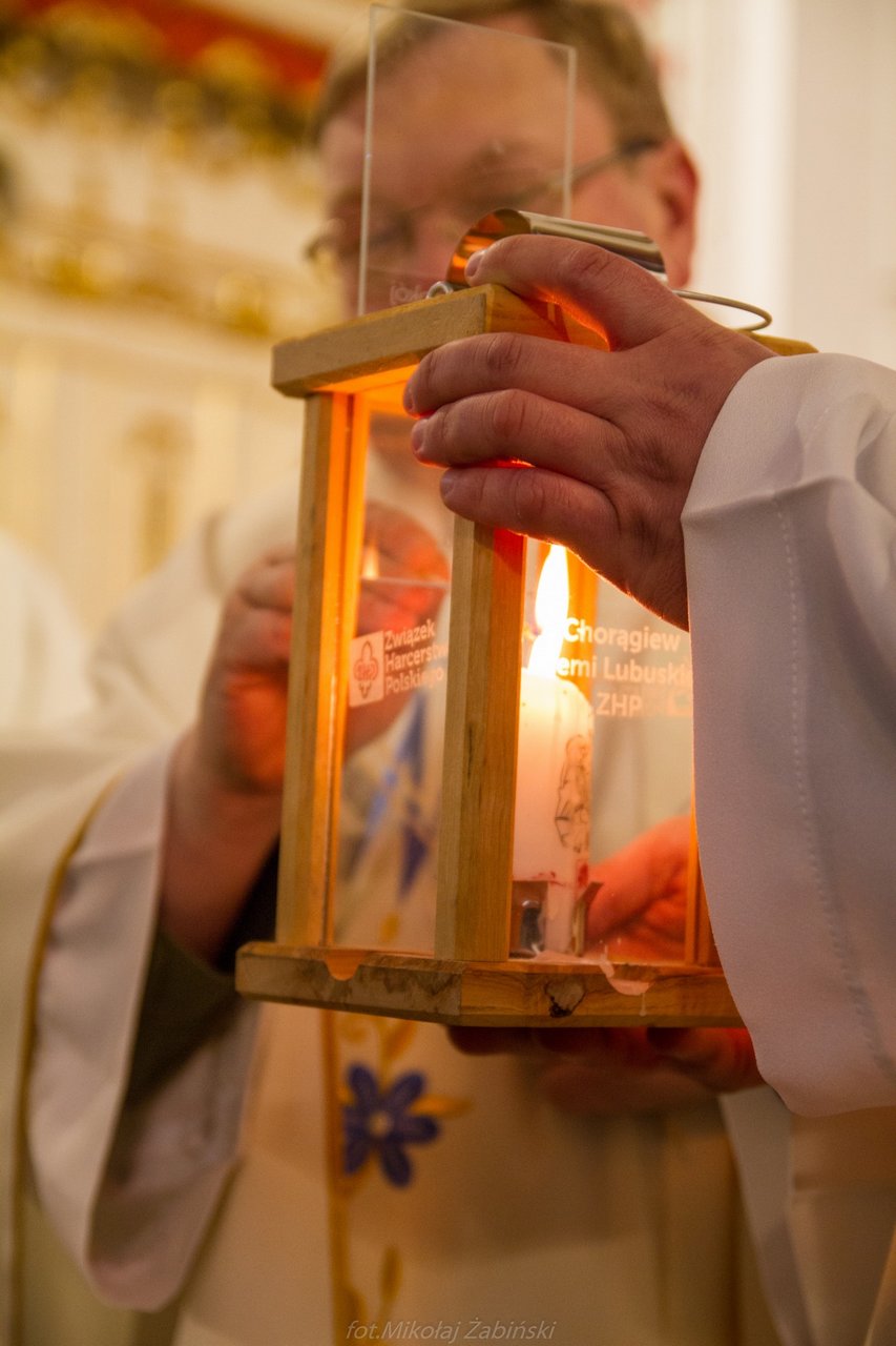 Wcześniej delegacja słubickich harcerzy odebrała światło w Sanktuarium Matki Bożej Cierpliwie Słuchającej w Rokitnie, gdzie odbyło się specjalne nabożeństwo pod przewodnictwem biskupa Adriana Pluty.