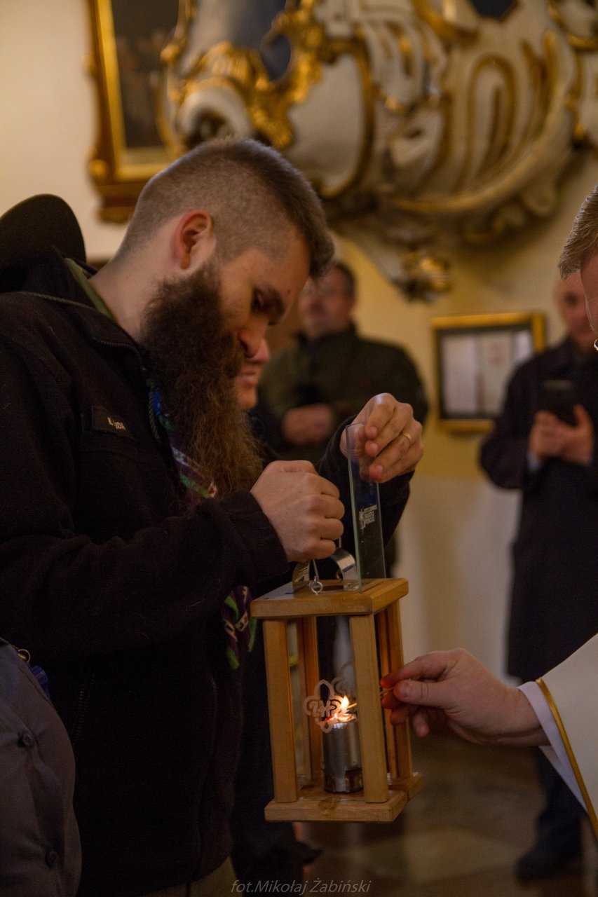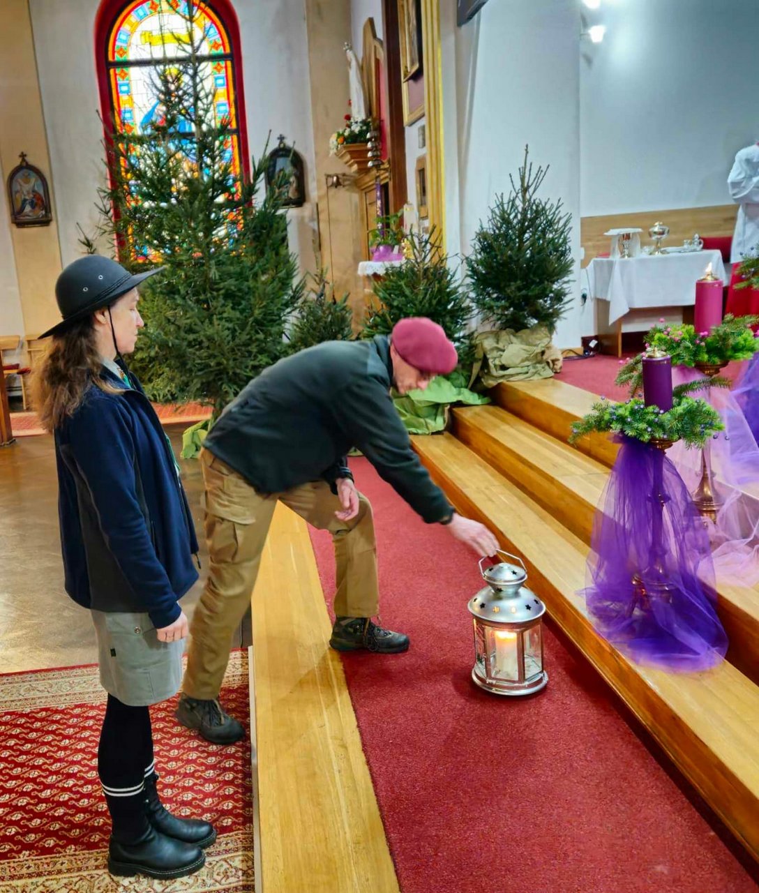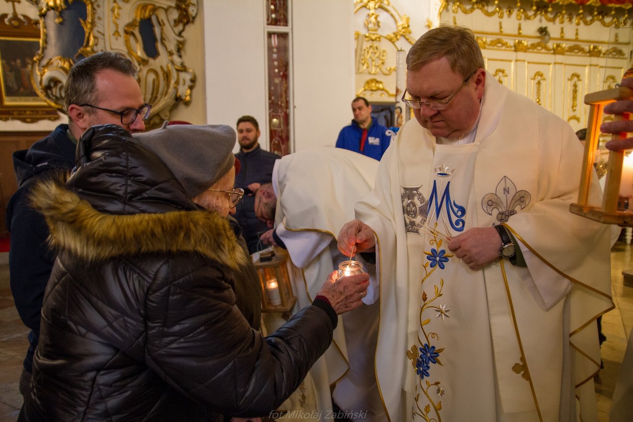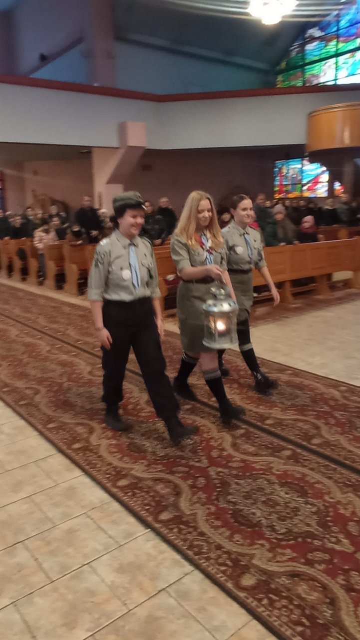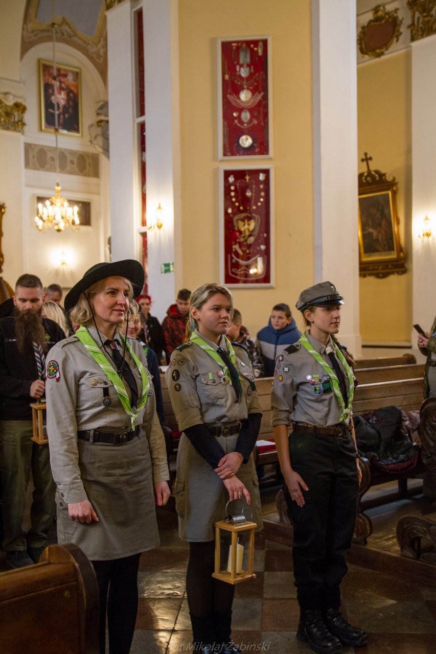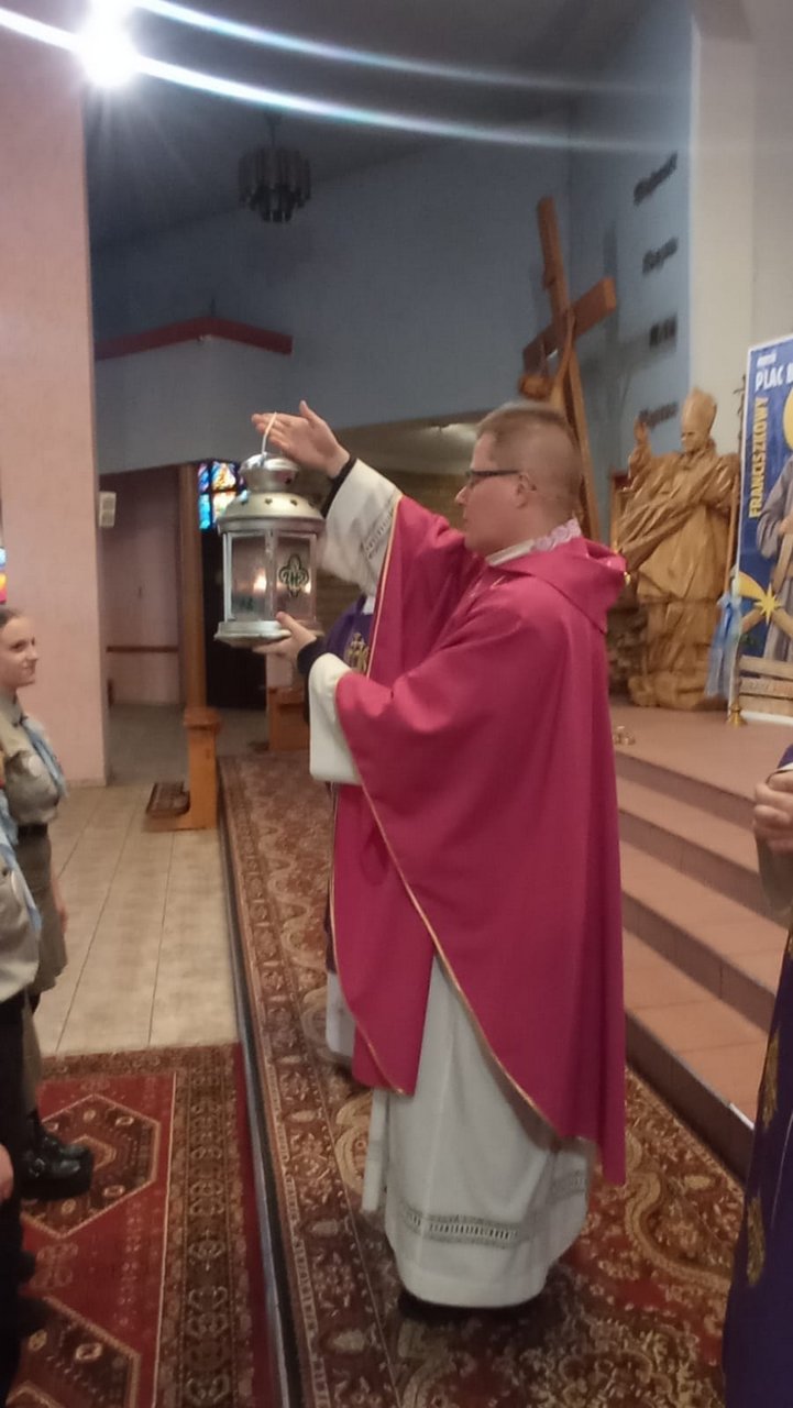 Wcześniej delegacja słubickich harcerzy odebrała światło w Sanktuarium Matki Bożej Cierpliwie Słuchającej w Rokitnie, gdzie odbyło się specjalne nabożeństwo pod przewodnictwem biskupa Adriana Pluty.