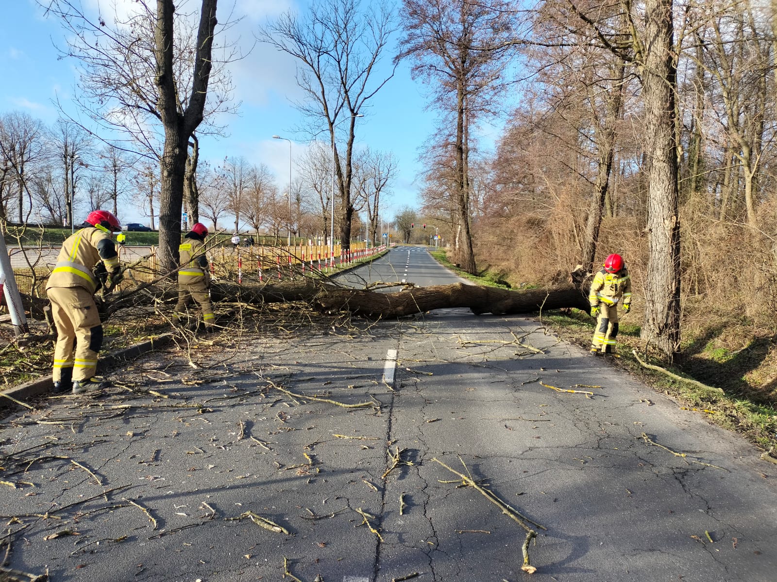 Zgłoszenia głównie dotyczyły uszkodzonych drzew, które spadały na jezdnię, linie teleinformatyczne lub prywatne posesje.