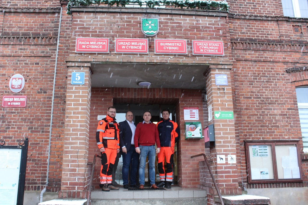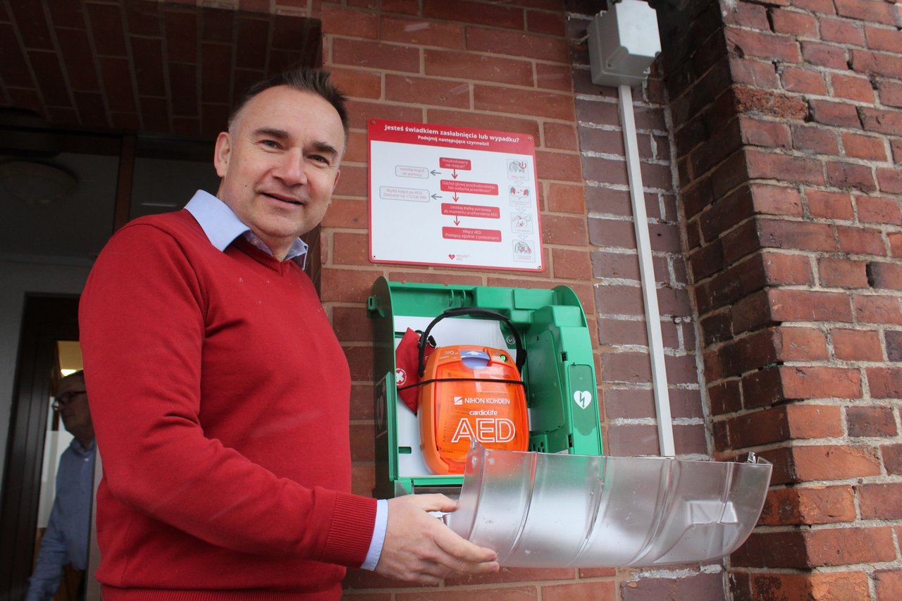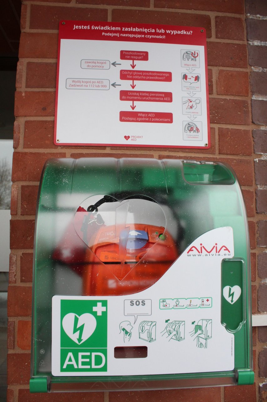 Defibrylator znajduje się przy wejściu do Urzędu Miejskiego w Cybince.