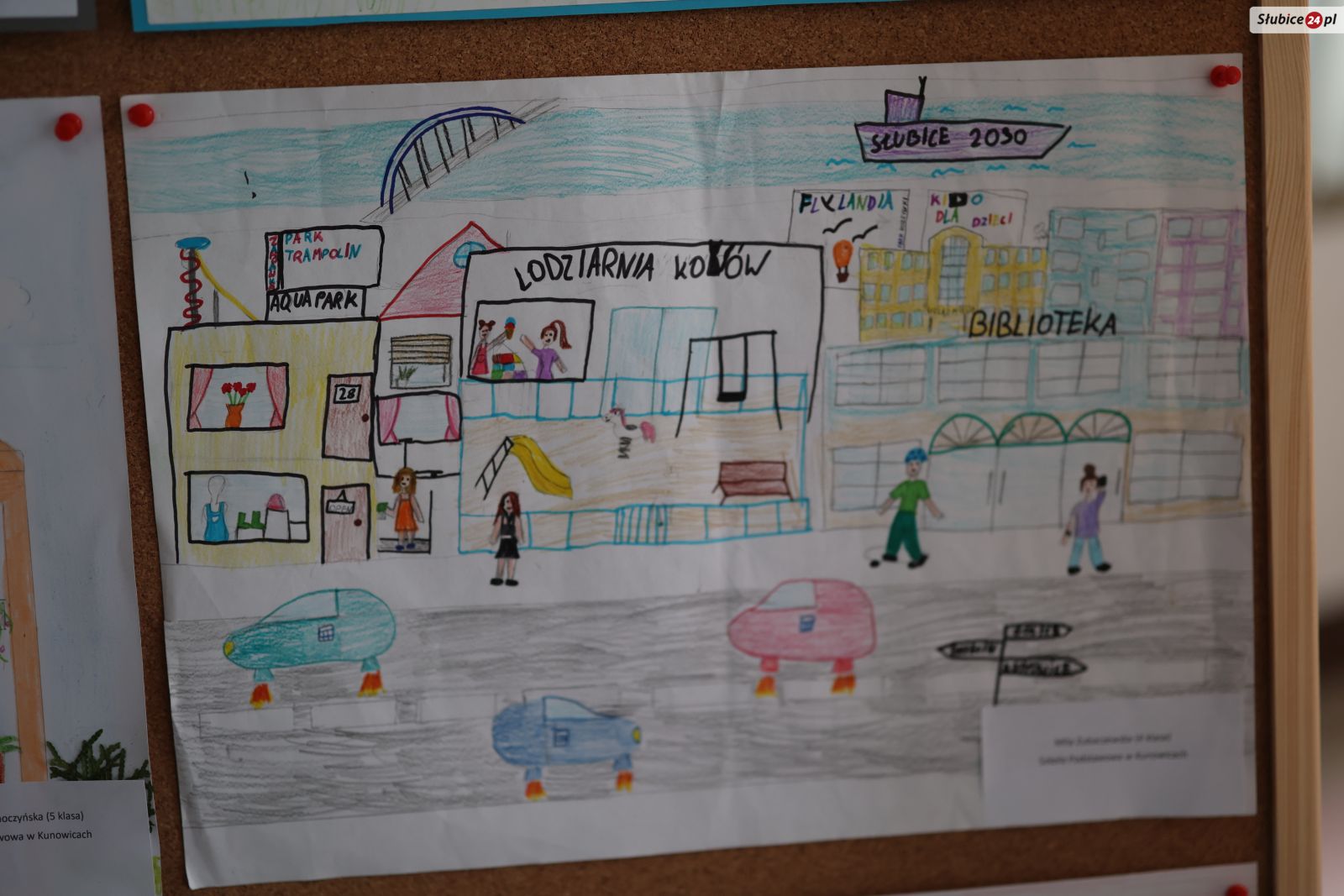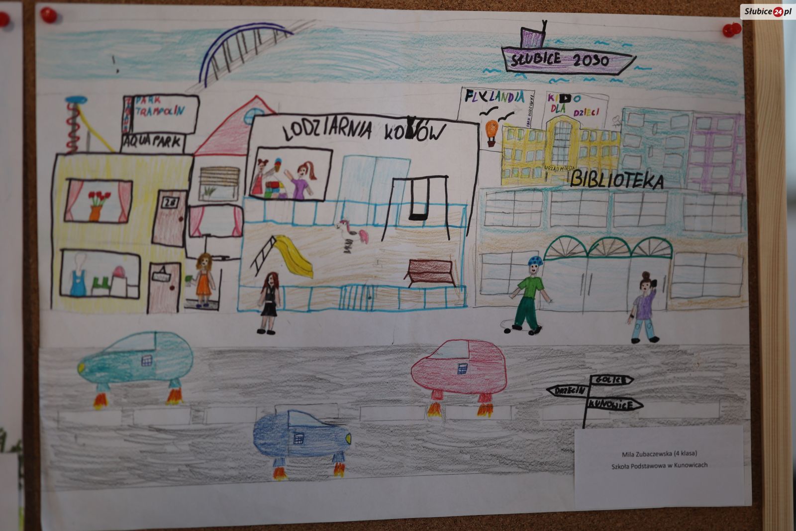 Jakie pomysły mieli młodzi mieszkańcy Słubic? Na rysunkach znalazły się m.in. kolejka linowa, która łączy stadiony w Słubicach i we Frankfurcie nad Odrą, oceanarium, ogród botaniczny, zoo, wesołe miasteczko, basen czy galeria handlowa.