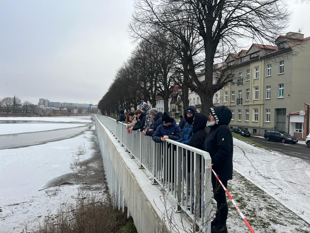 Strażacy zaprezentowali wszystkie metody wydobywania człowieka, który znalazł się w wodzie z powodu pęknięcia tafli lodu, a ich działaniom z wysokości wału przeciwpowodziowego przyglądały się dzieci i młodzież ze słubickich szkół.