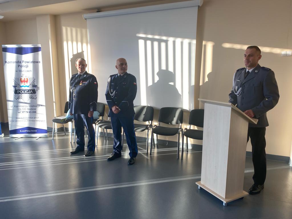 - W ostatnich latach jako naczelnik Wydziału Ruchu Drogowego w słubickiej policji dbał o bezpieczeństwo na drogach naszego powiatu. W czasie uroczystej zbiórki otrzymał wiele ciepłych słów za dotychczasową służbę, jednocześnie otrzymał również gratulacje i życzenia pomyślności w realizowaniu się w nowych obowiązkach służbowych – informuje Ewa Murmyło, rzecznik słubickiej policji.