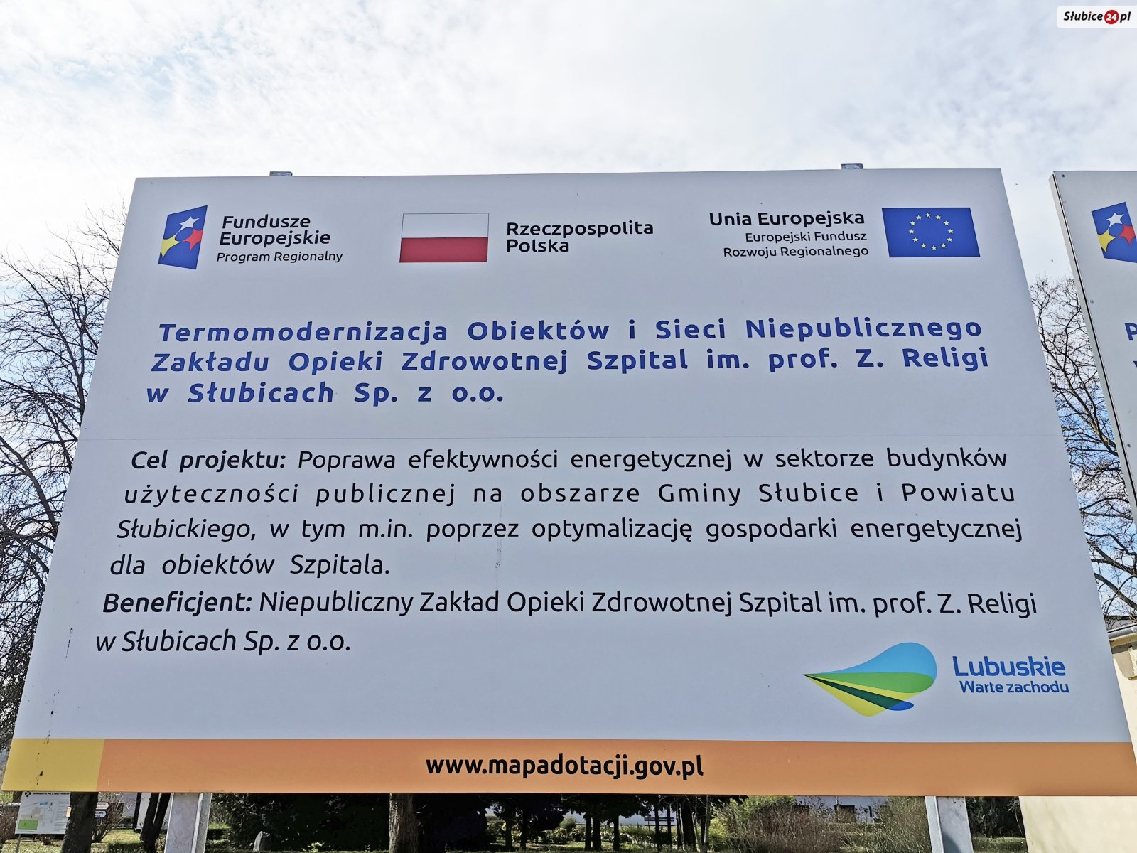 Rzecznik prasowy powiatu słubickiego Wojciech Obremski przytoczył też najważniejsze dane związane z inwestycją „Termomodernizacja obiektów i sieci Niepublicznego Zakładu Opieki Zdrowotnej Szpital im. Prof. Z. Religi w Słubicach”. Całość prac kosztowała 13.111.400,00 zł, z czego dofinansowanie wyniosło 10.376.496,93 zł.