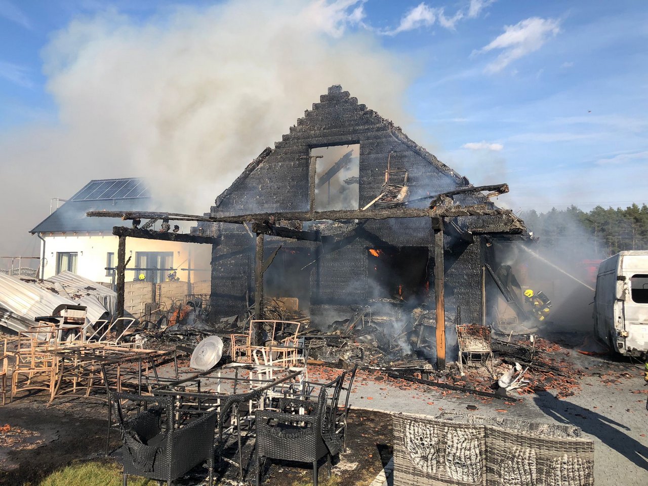 Jak wyglądała akcja? - Po przyjeździe na miejsce zastaliśmy niestety cały budynek w płomieniach. To był stosunkowo nowy dom, miał kilka lat. W pierwszej kolejności staraliśmy się obronić sąsiedni budynek, który mógł zająć się ogniem. Udało nam się to, choć promieniowanie cieplne uszkodziło jego elewację i okna - tłumaczy rzecznik.