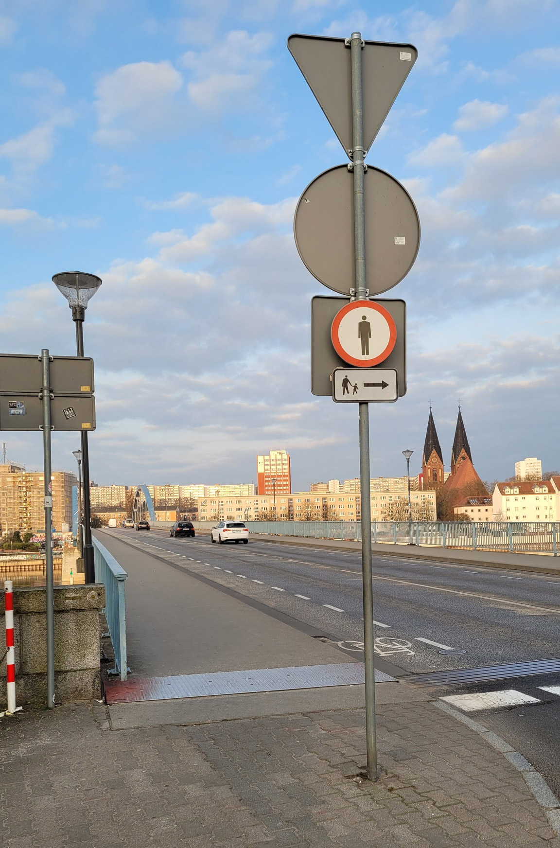 Słubicko-Frankfurckie Centrum Kooperacji poinformowało, że piesi udający się przez most graniczny do Frankfurtu powinni korzystać z chodnika tylko po jednej, północnej stronie. Na przyczółku mostu stanął znak informujący o zakazie ruchu pieszych.