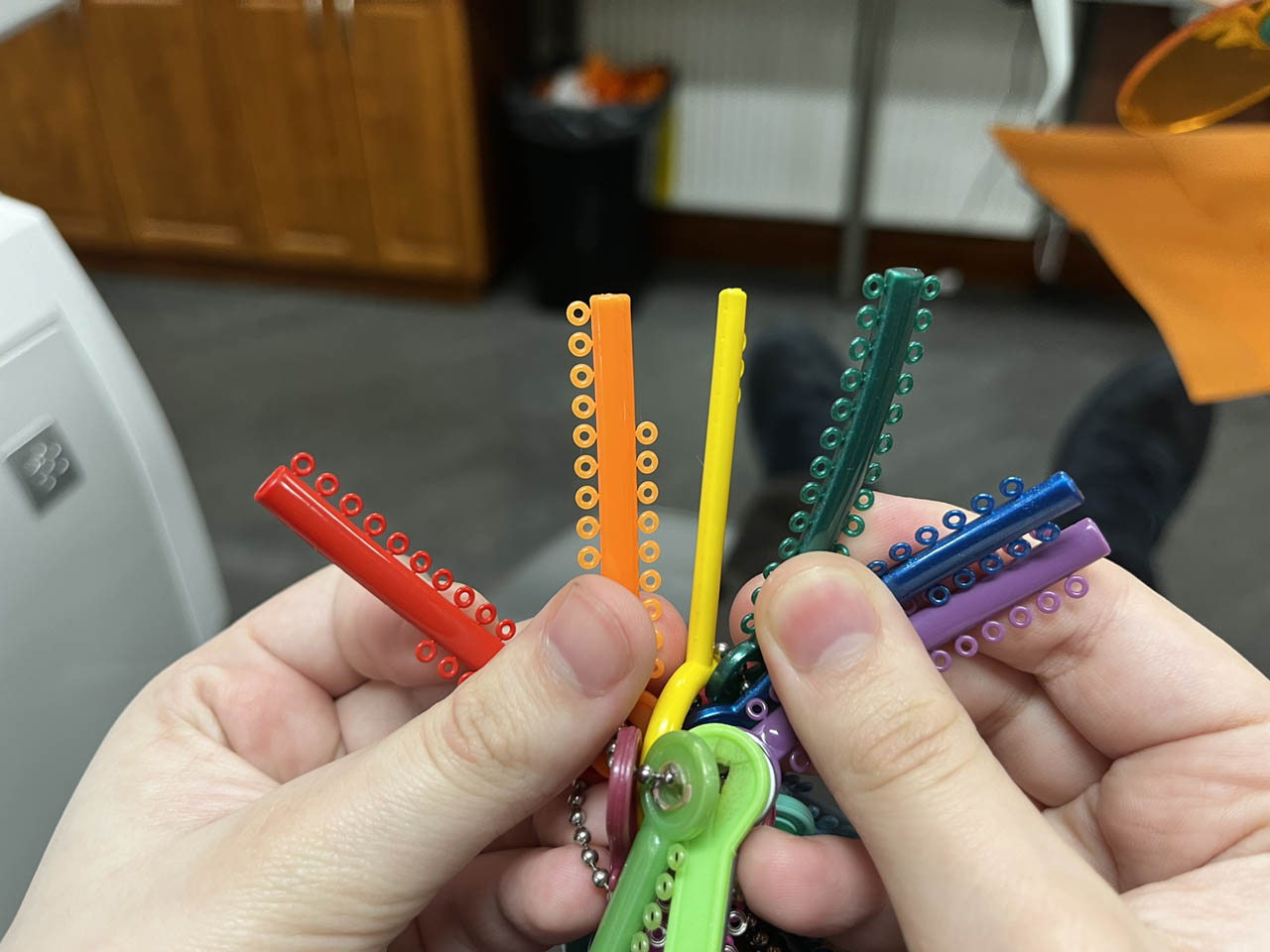 Dodamy od siebie, że jest bardzo kolorowo, pacjenci mają szeroki wybór kolorów ligatur (gumeczek).