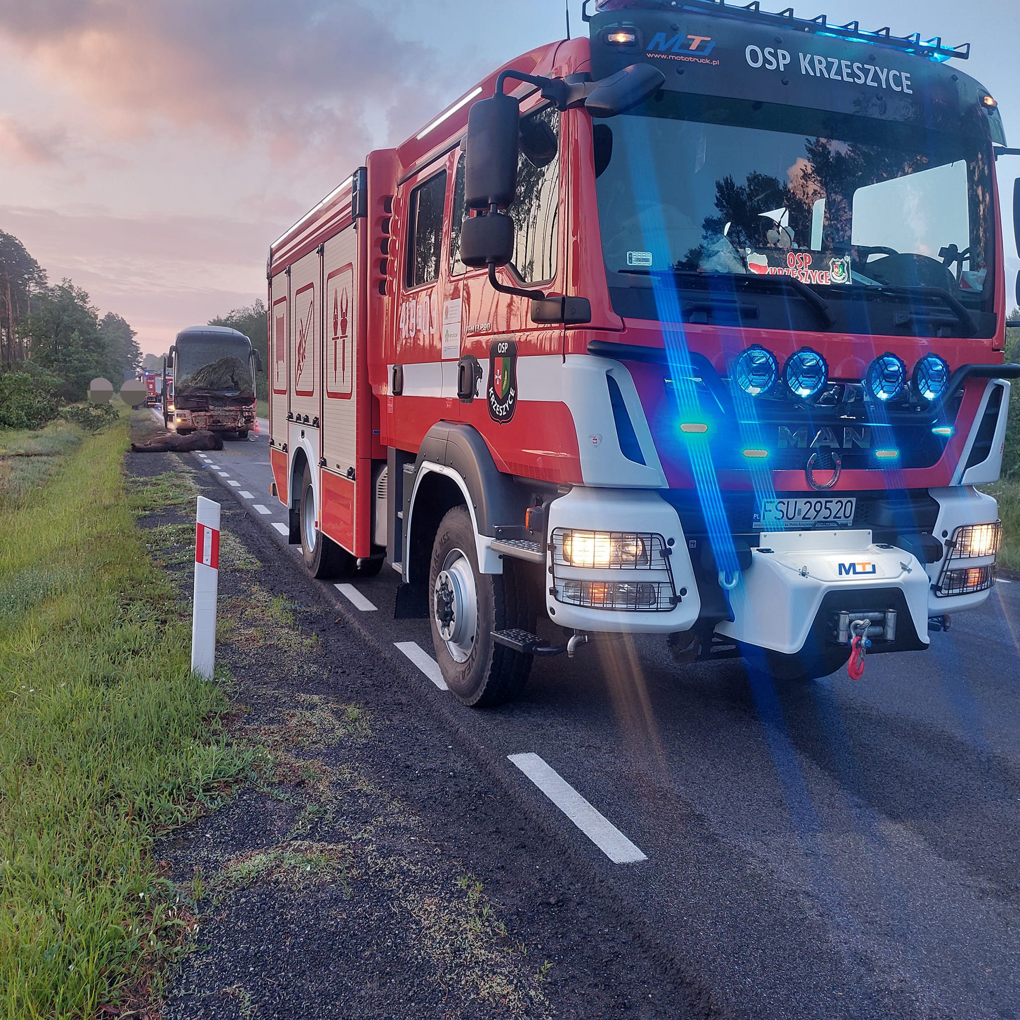 Do groźnego wypadku doszło na drodze krajowej nr 22 w rejonie Krzeszyc. Autobus z pasażerami zderzył się z dwoma końmi, które wbiegły na jezdnię.