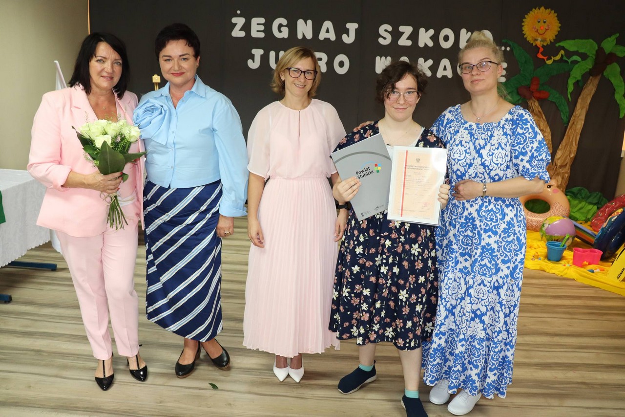 Wicestarosta Regina Waszkiewcz oraz główna specjalistka ds. oświaty w starostwie Grażyna Bajon żegnały uczniów w Specjalnym Ośrodku Szkolno-Wychowawczym. Przekazały też Ewie Sawickiej nagrodę starosty za wysokie wyniki w nauce, a nauczycielom podziękowania.