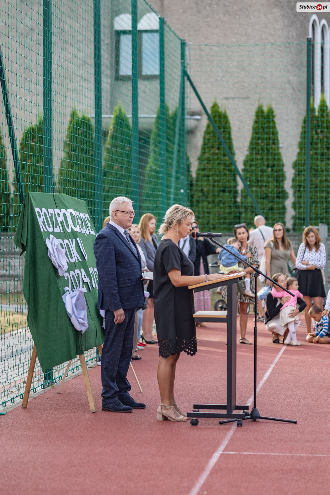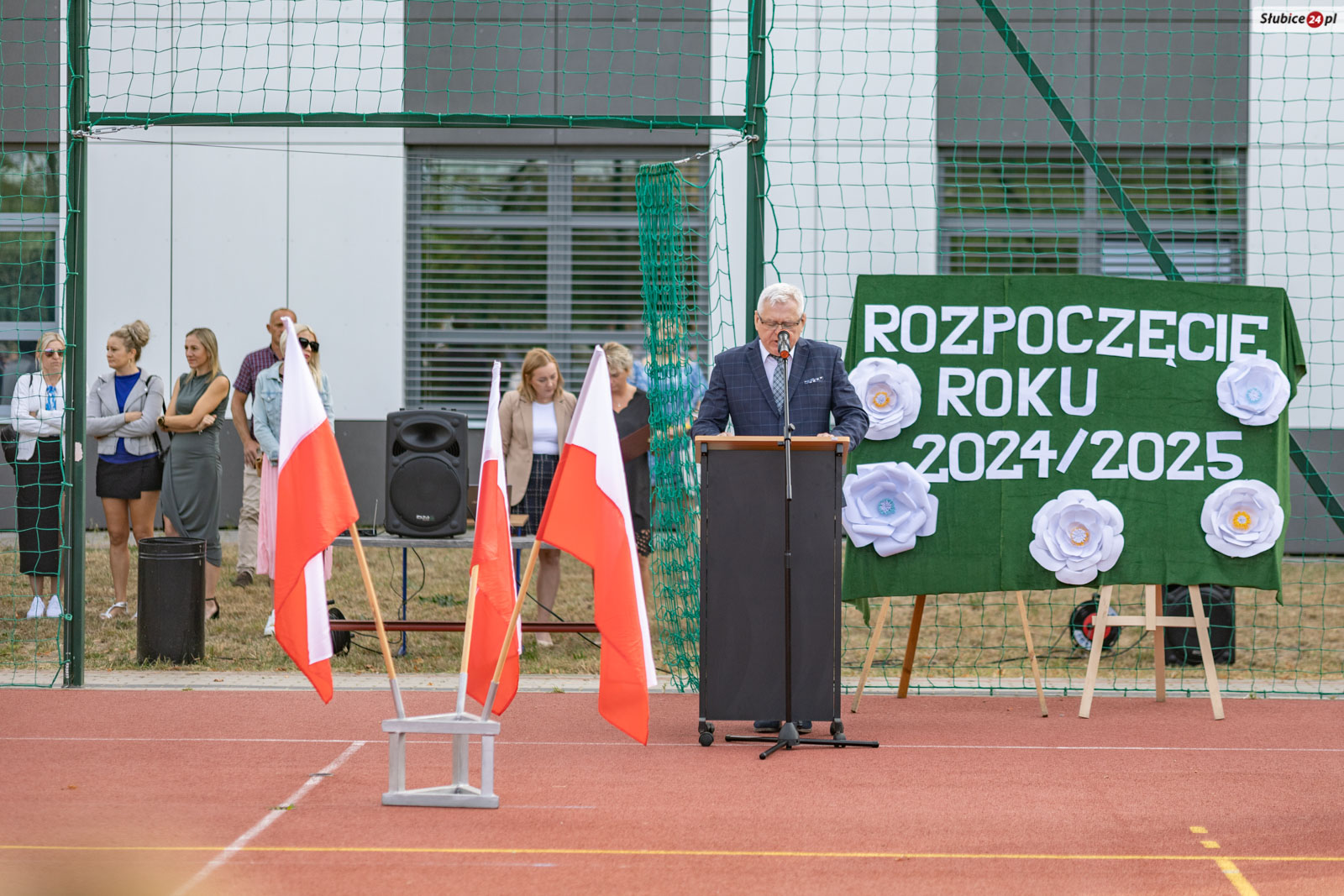 - Aż nie chce się uwierzyć tej nieubłaganej prawdzie: wakacje właśnie dobiegły końca – mówił do zgromadzonych dyrektor Arkadiusz Kokociński. Szczególnie serdecznie przywitał nowych uczniów, którzy po raz pierwszy przekroczyli szkolne progi.