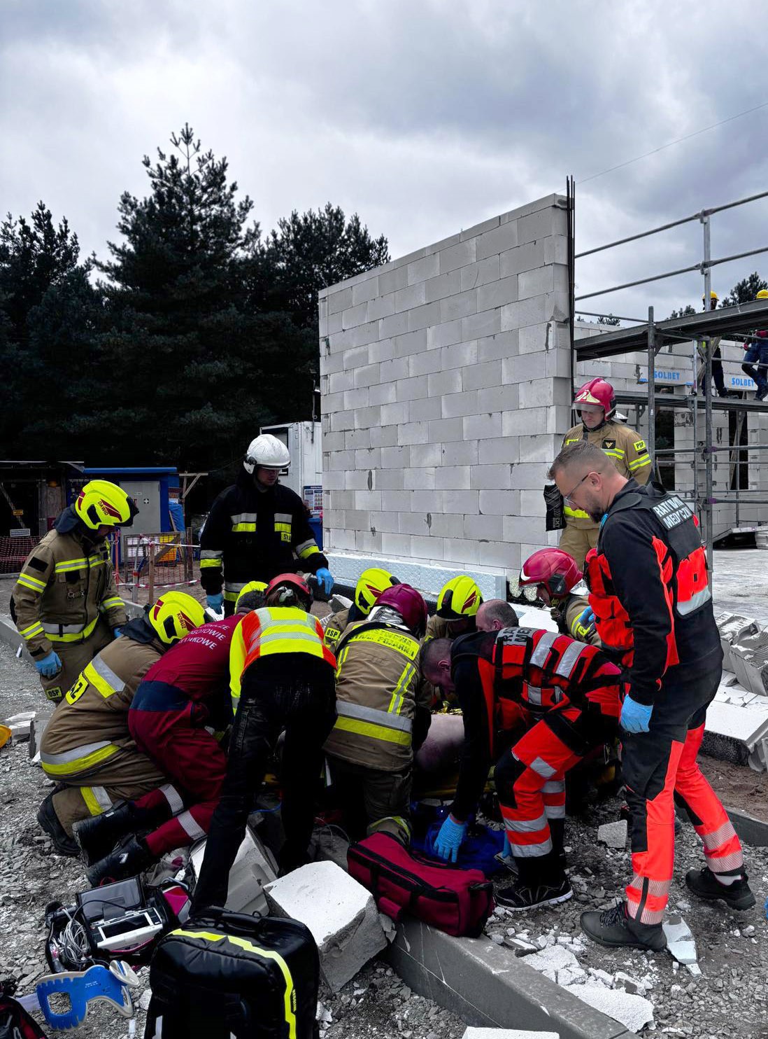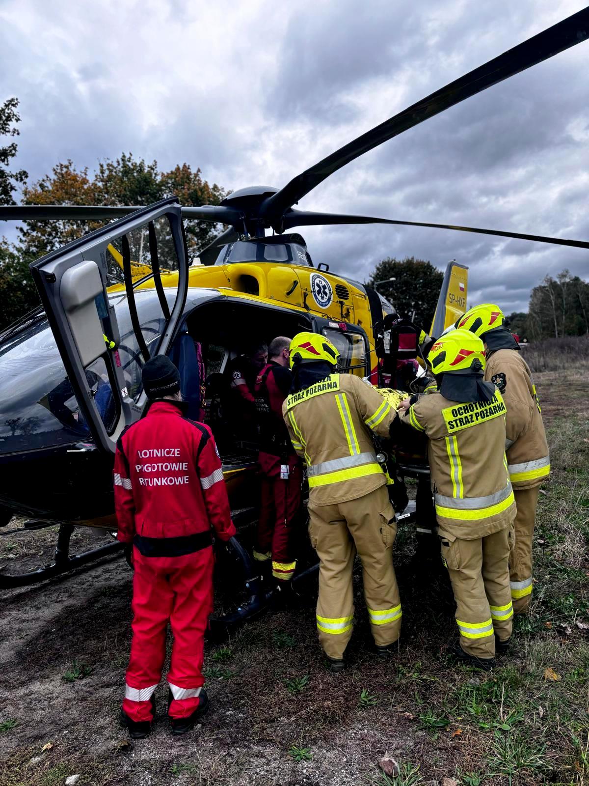 - Działania w pierwszej fazie polegały na zabezpieczeniu miejsca zdarzenia oraz wykonaniu dostępu do osoby poszkodowanej, która została przekazała załodze Zespołu Ratownictwa Medycznego. Następnie poszkodowana osoba z licznymi urazami została zaopatrzona przez ratowników i przetransportowana z terenu budowy do śmigłowca – relacjonują strażacy z OSP Cybinka.