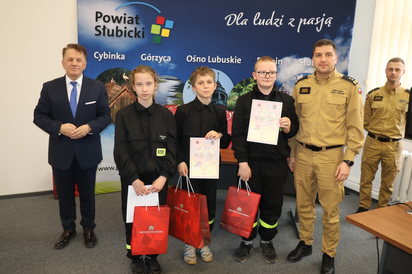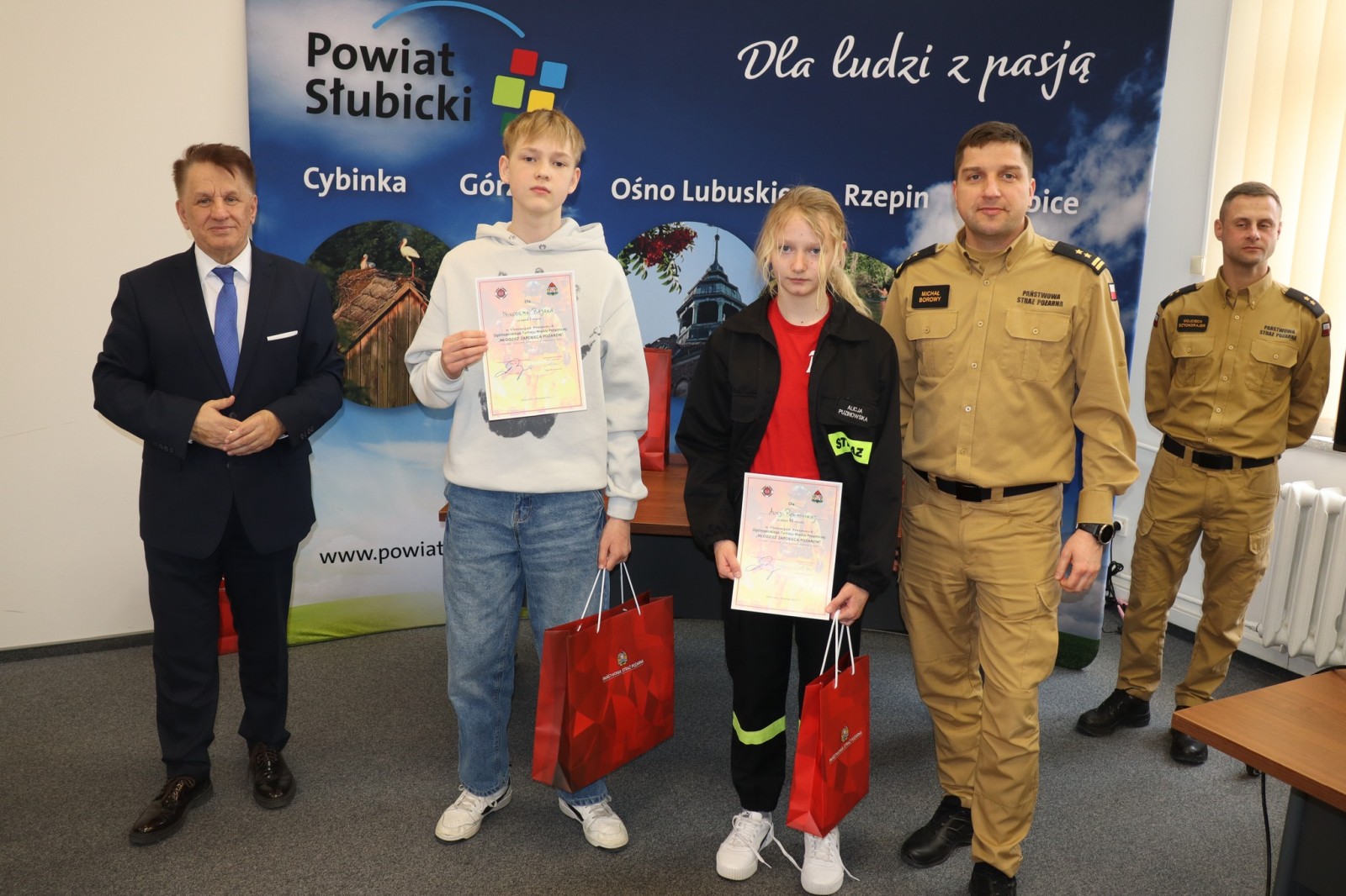 Zwycięzcy konkursu otrzymali nagrody z rąk starosty Leszka Bajona oraz komendanta Michał Borowego.