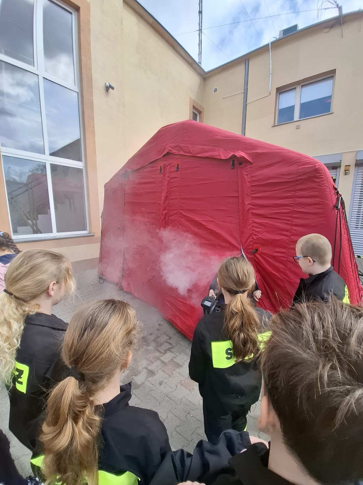 Strażacy sprawili uczestnikom turnieju niespodziankę - w przerwie między etapami na placu komendy odbył się pokaz ratownictwa technicznego i medycznego. Zaprezentowali też działanie kamery termowizyjnej w zadymionym pomieszczeniu.