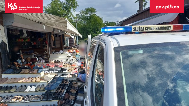 Kolejna akcja funkcjonariuszy Krajowej Administracji Skarbowej na bazarze w Słubicach. Mundurowi skontrolowali jedno ze stoisk handlowych, na którym ujawnili blisko 500 par podrabianych butów.