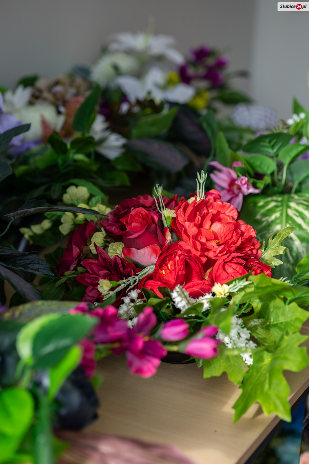 W ofercie znajdziemy zarówno kompozycje nagrobne, przygotowane z myślą o zbliżającym się dniu Wszystkich Świętych, jak i dekoracyjne stroiki do domu. Są też ręcznie robione ozdoby w klimacie jesieni – m.in. wieńce na drzwi, kolorowe sówki i dynie.