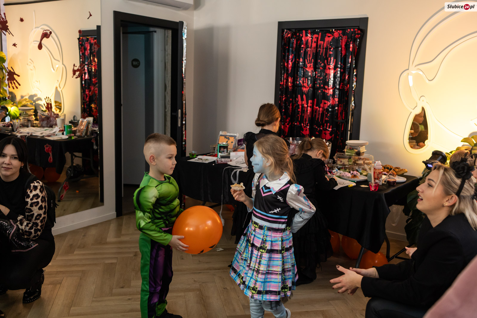 W salonie przy ul. Piłsudskiego 1 królowały halloweenowe klimaty – były kolorowe makijaże, świecące tatuaże, balonowe dekoracje, a także możliwość pomalowania własnej torebki na cukierki. Na uczestników czekał również słodki poczęstunek – domowe ciasta, przekąski, kawa i napoje. Cały salon – w środku i na zewnątrz – został udekorowany w duchu Halloween.