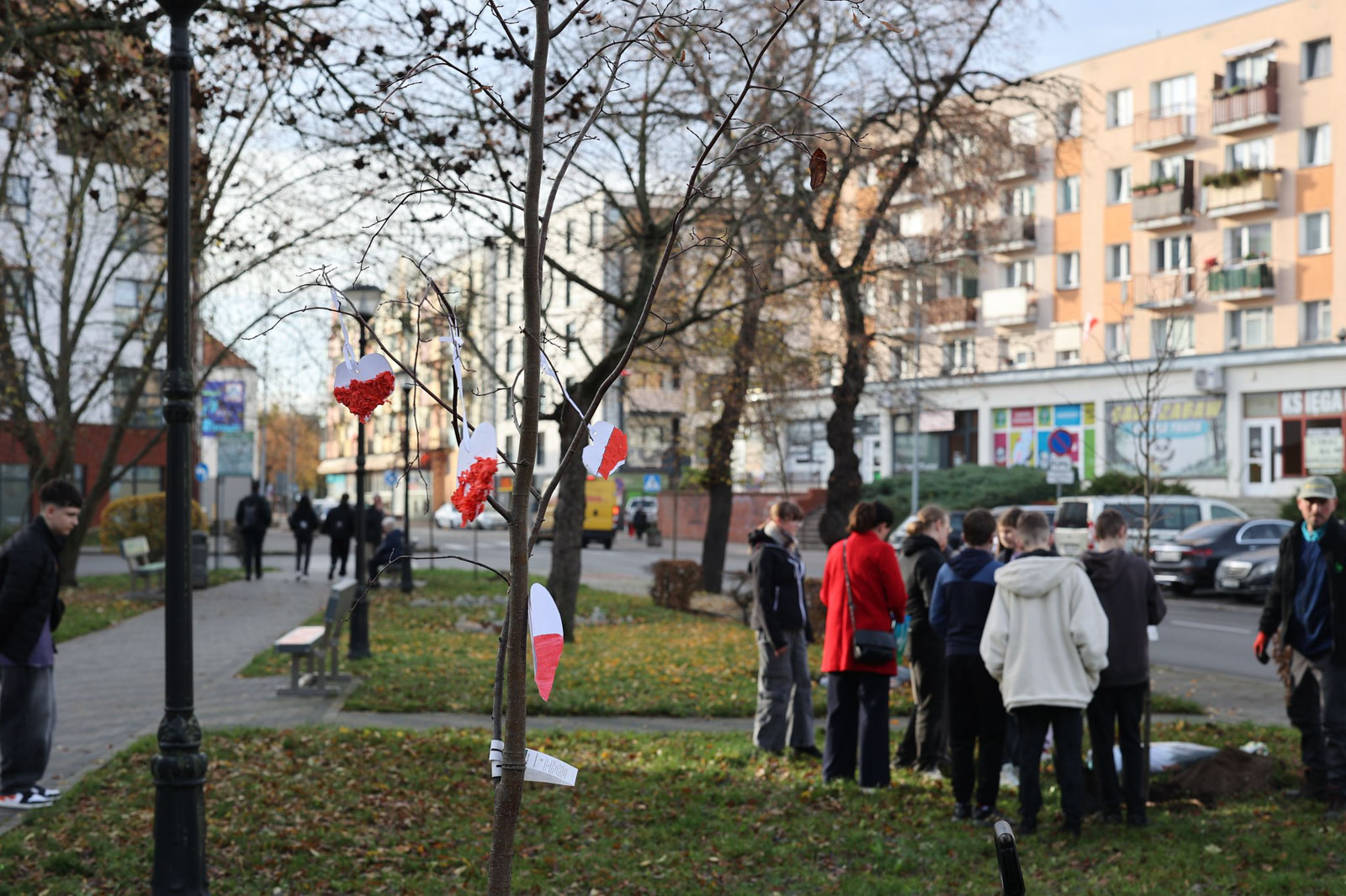 Drzewa ozdobiono biało-czerwonymi sercami, które wcześniej przygotowały dzieci z przedszkoli w ramach akcji „107 serc dla Polski” (ZOBACZ). Wydarzenie miało nie tylko charakter symboliczny, ale i praktyczny. Jak poinformowała gmina, nowe nasadzenia nawiązują do historycznego układu zieleni w tej części miasta. Lata temu rosły tu lipy, które zostały ścięte w trakcie rozbudowy Słubic.