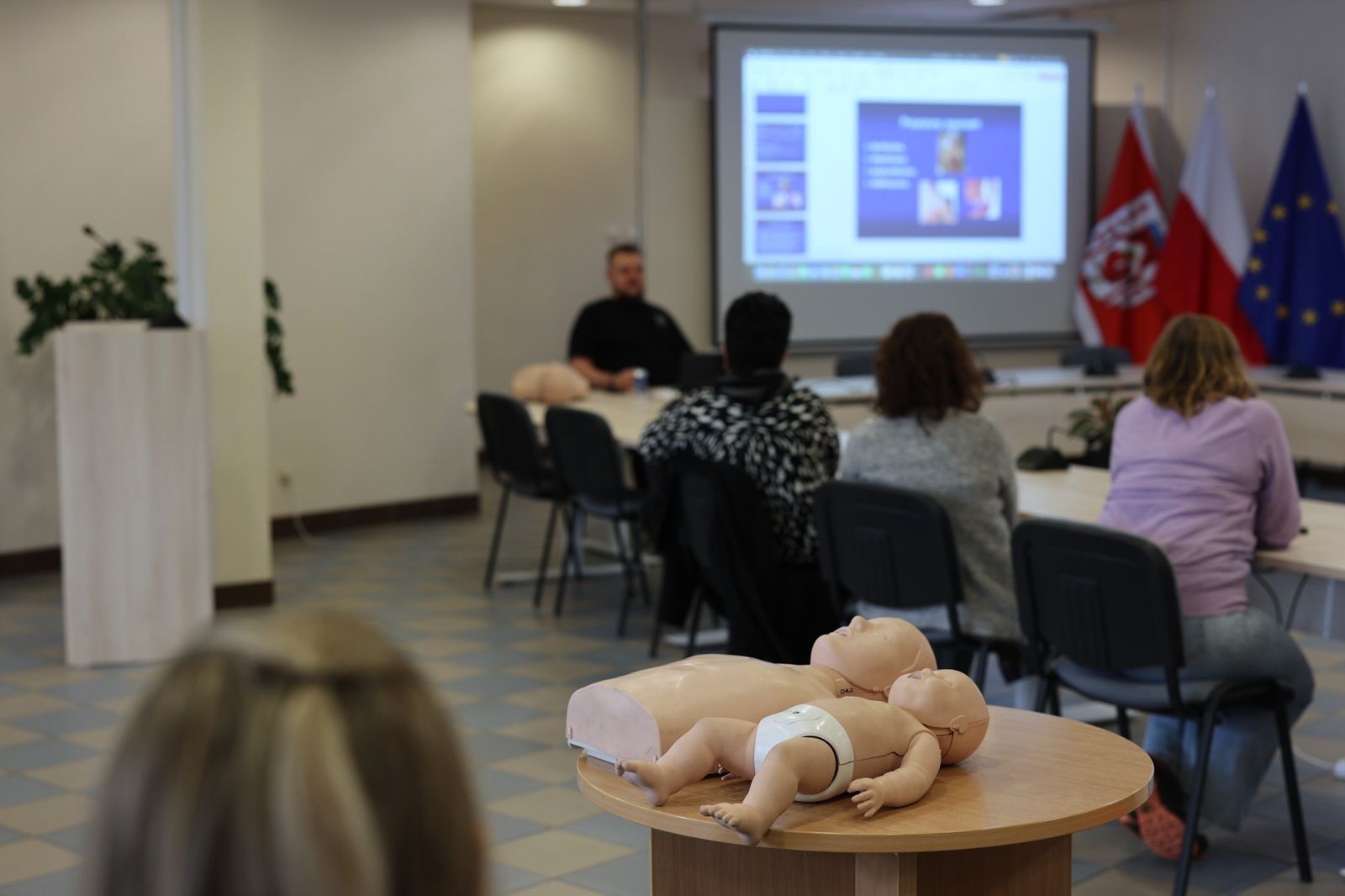 Oprócz epizodów ćwiczeniowych urzędnicy wzięli także udział w szkoleniu z pierwszej pomocy przedmedycznej, obejmującym m.in. resuscytację, pomoc przy zadławieniu czy utracie przytomności. Zajęcia prowadził Łukasz Skorek - ratownik medyczny, naczelnik słubickiego OSP oraz radny.