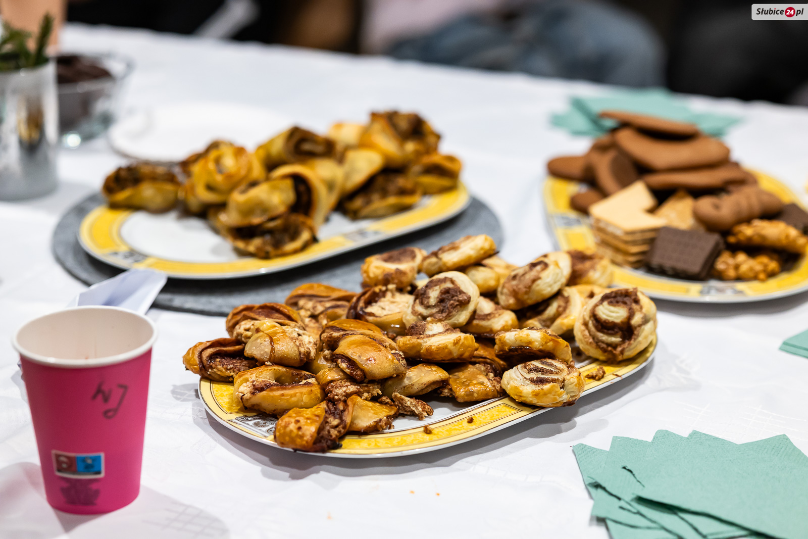 Nie zabrakło też wspólnego poczęstunku. Na stołach pojawiły się paszteciki, barszcz, cynamonki, zimowa herbata i czekoladowa fontanna.