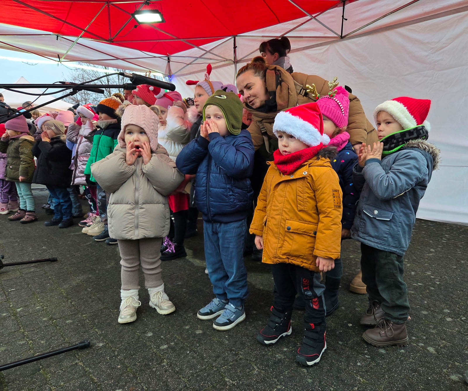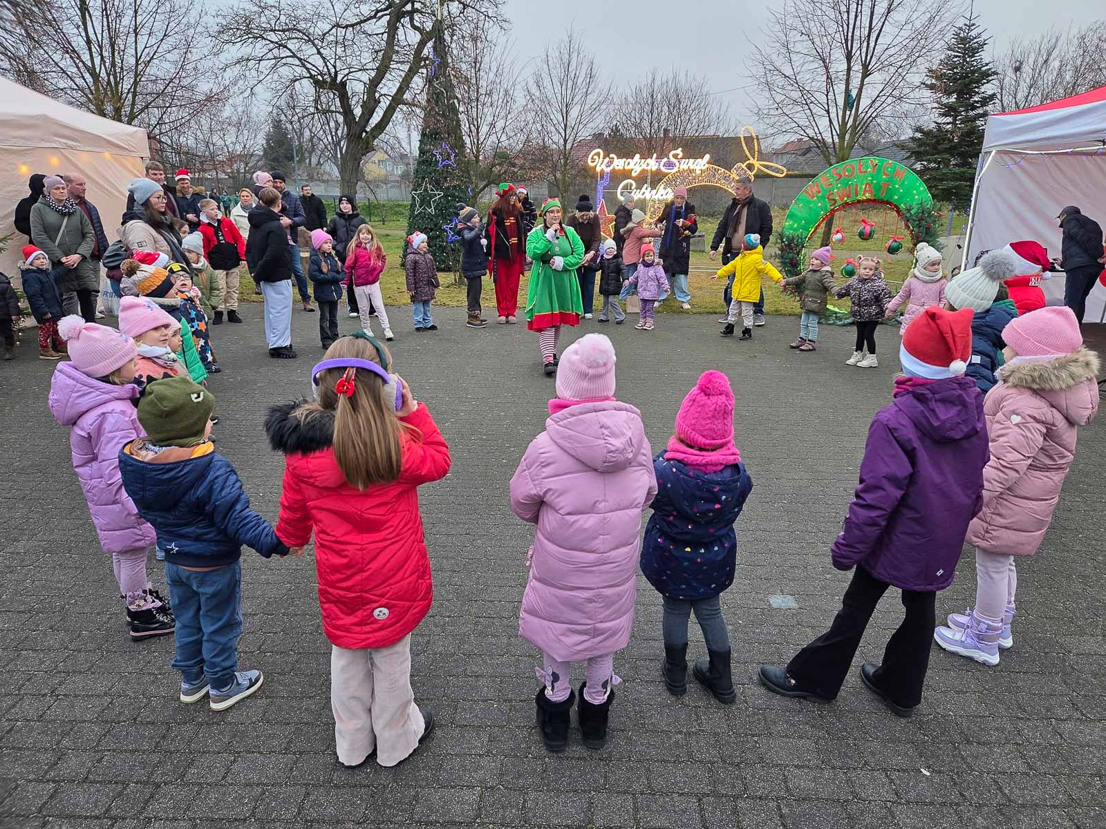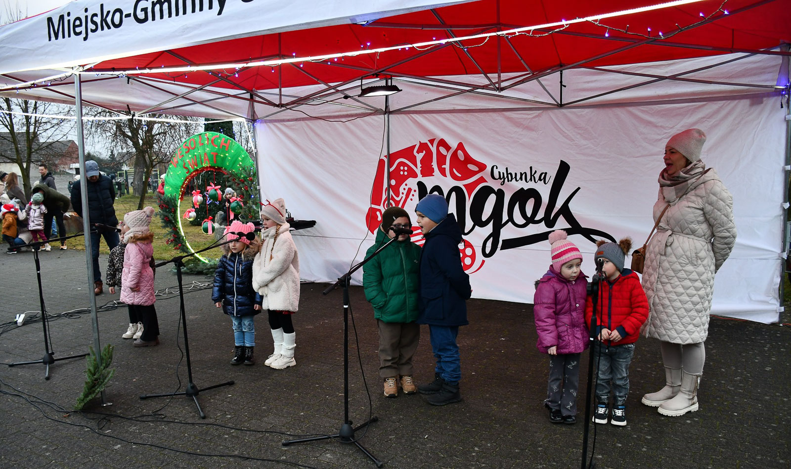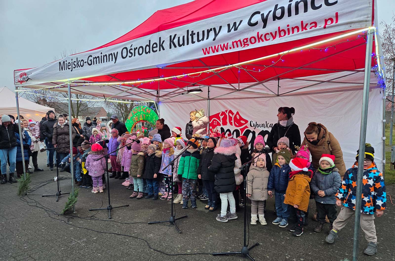 Dla najmłodszych przygotowano strefę animacji, spotkanie ze świętym mikołajem i elfami oraz nietypową atrakcję – maszynkę do niszczenia złych uczynków. Dodatkowym zaskoczeniem było pojawienie się dwóch Grinchów. Na scenie wystąpili m.in. przedszkolaki z Białkowa i Cybinki, uczennice Społecznego Ogniska Muzycznego i zespół „Antidotum”.