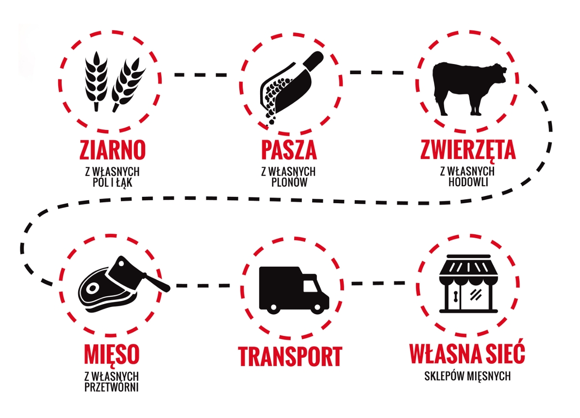 Firma odpowiada za cały proces produkcji – od uprawy, przez hodowlę, przetwarzanie aż po dostawę do swoich punktów handlowych i klientów. Dlatego może zagwarantować najwyższą jakość oferowanych produktów, a klienci wiedzą, co trafia na ich talerz.