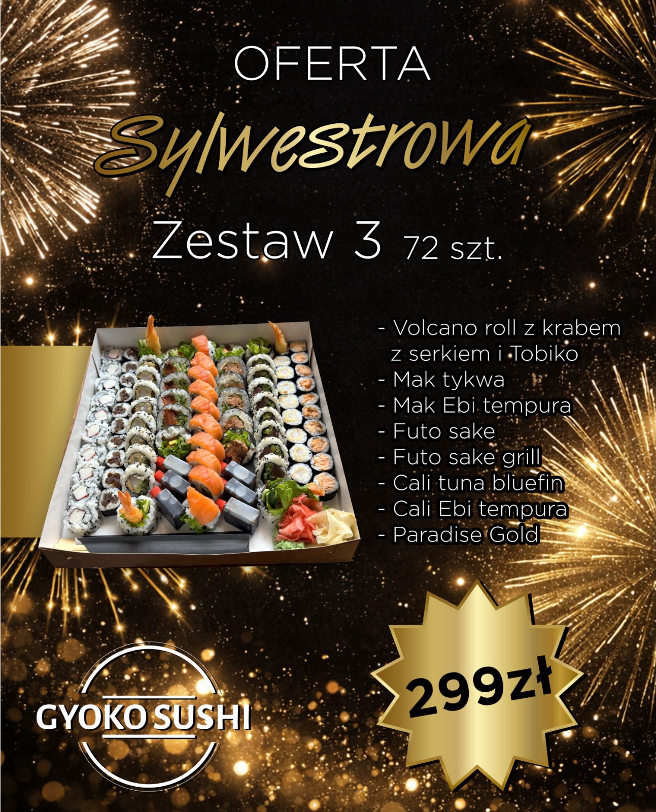 Planujesz wyjątkowe zakończenie roku? Gyoko Sushi przygotowało na tę okazję specjalne zestawy sylwestrowe. Ruszyło przyjmowanie zamówień.