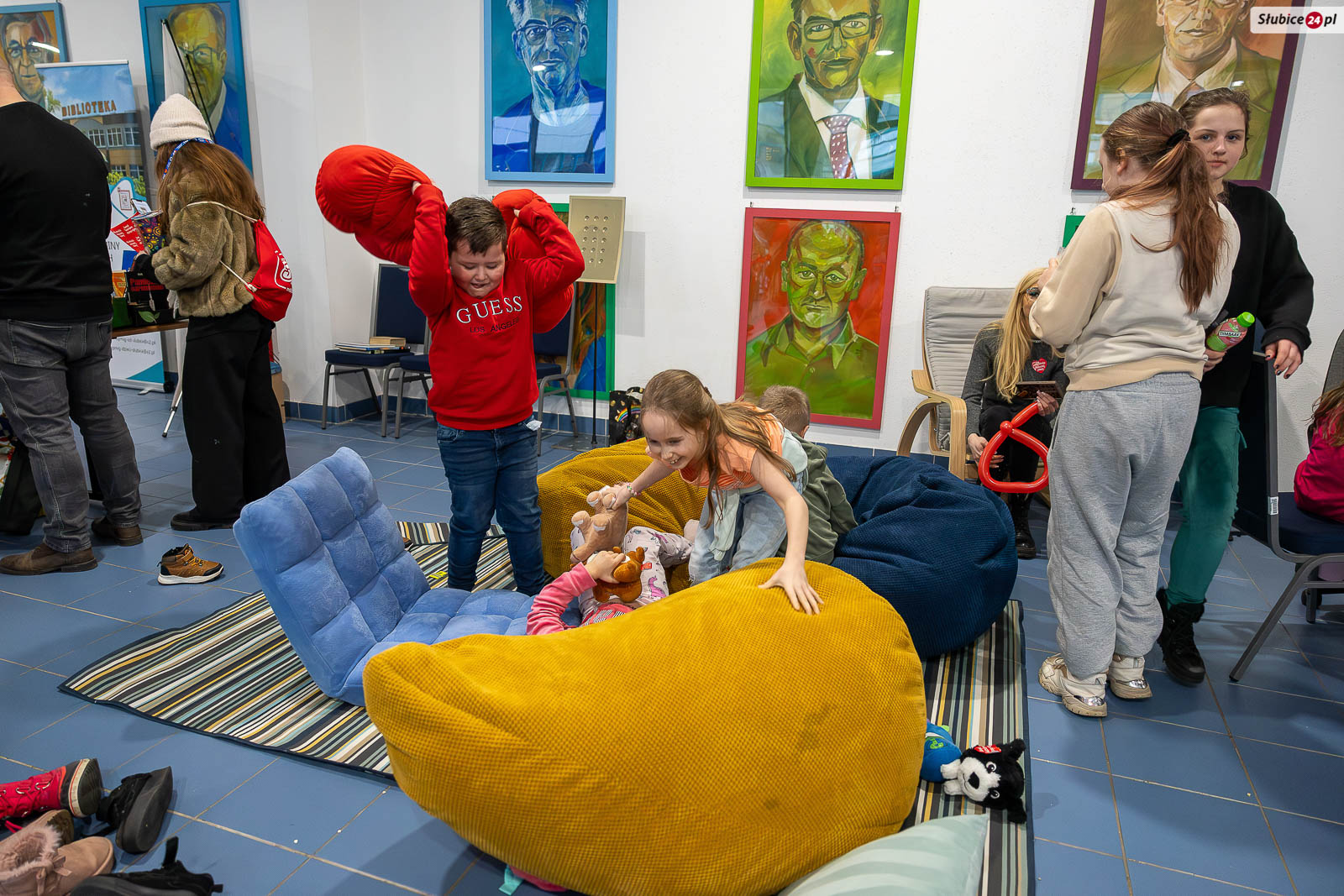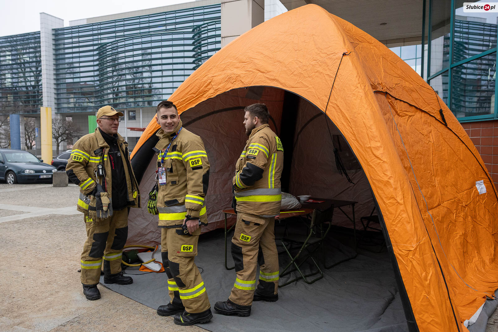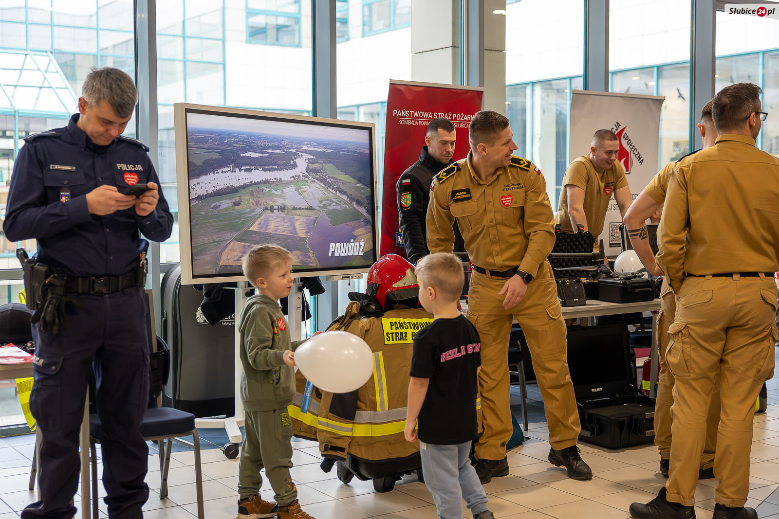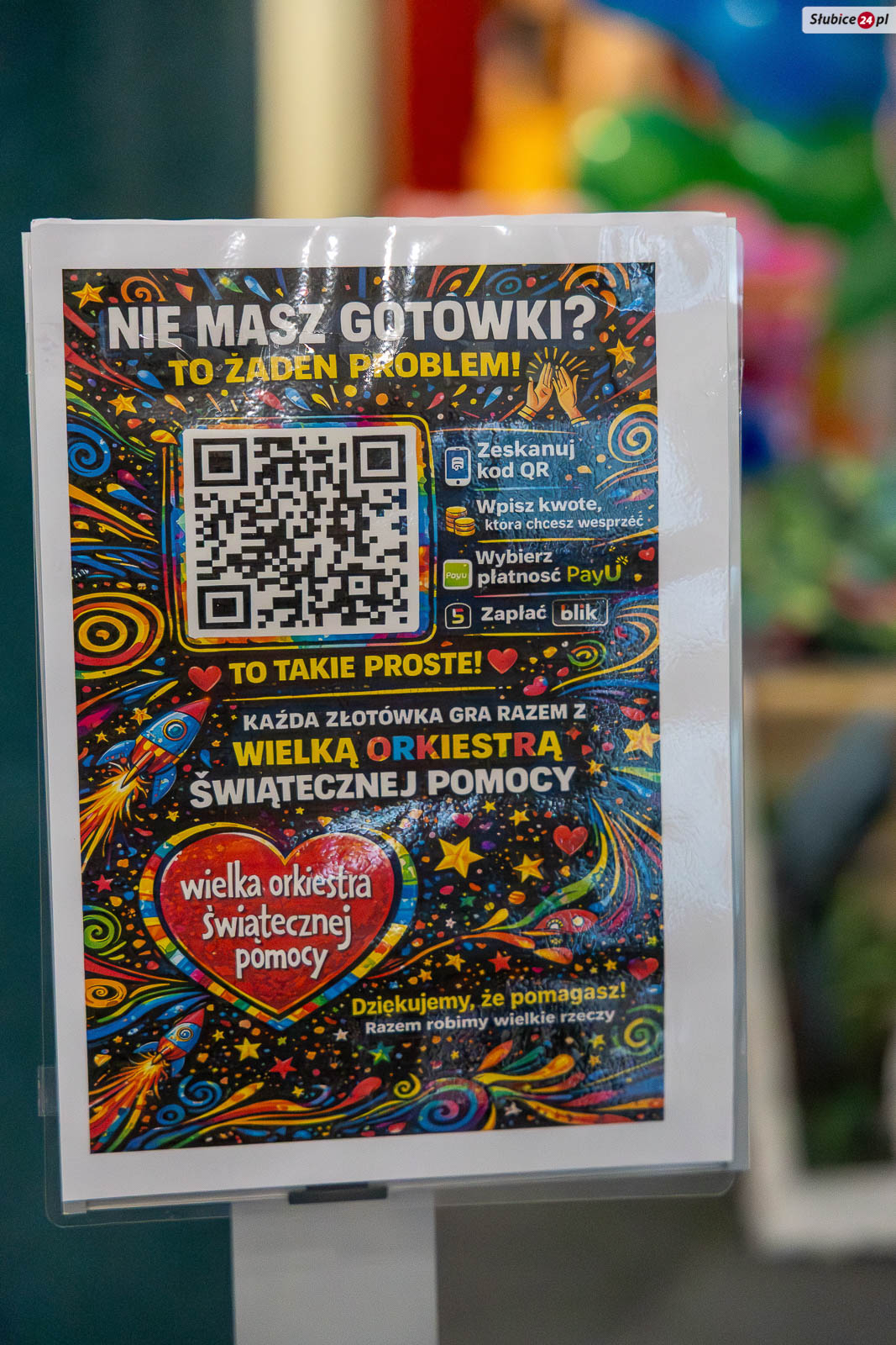 Swoje stoiska przygotowały również służby i instytucje – m.in. Komenda Powiatowa Państwowej Straży Pożarnej w Słubicach, Straż Graniczna oraz Gminna Komisja Rozwiązywania Problemów Alkoholowych. Nie zabrakło też miejsca na wspólne zdjęcie – w holu ustawiono specjalną ściankę z banerem WOŚP i balonami.