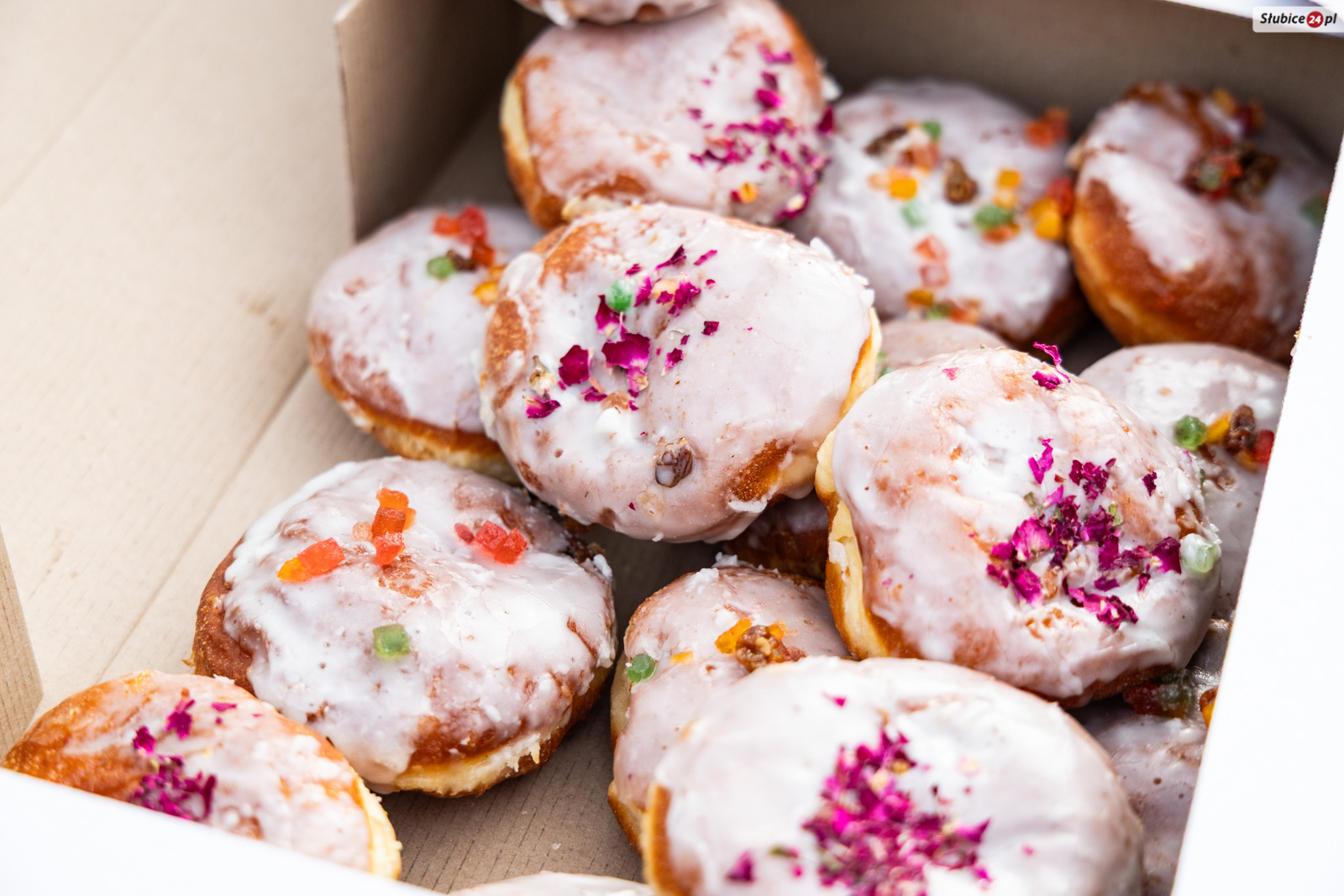 Pączki trafiały w ręce każdego, kto akurat przechodził przez plac lub otaczające go uliczki. Rozdano kilka kartonów słodkości, były też rozmowy z mieszkańcami i wspólne zdjęcia.