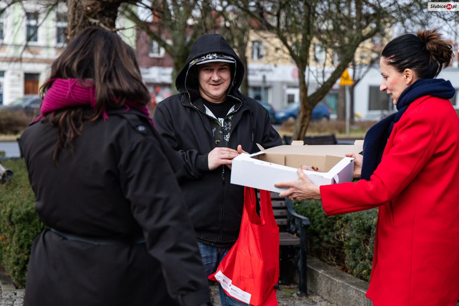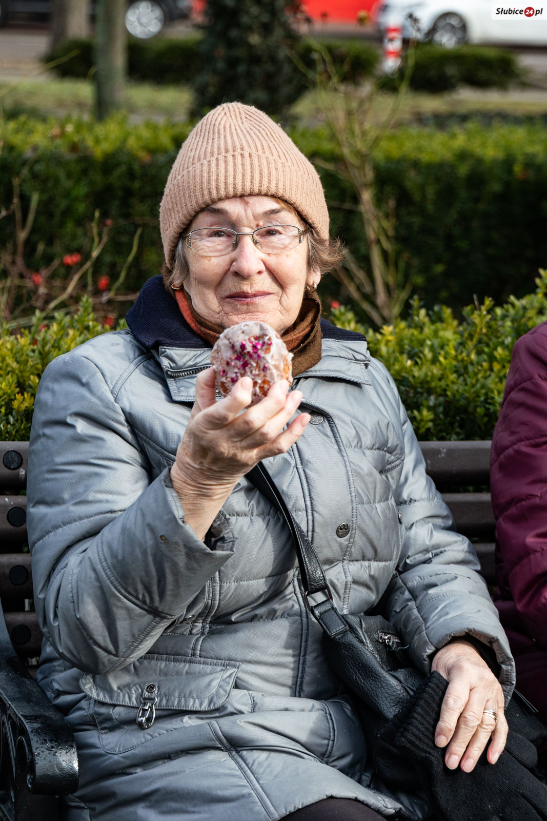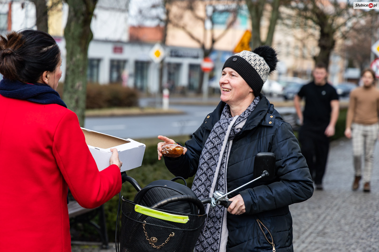 12 lutego na pl. Przyjaźni zrobiło się wyjątkowo słodko. Burmistrzyni Słubic Marzena Słodownik, wspólnie z pracowniczkami Urzędu Miejskiego, częstowała przechodniów pączkami z okazji tłustego czwartku.
