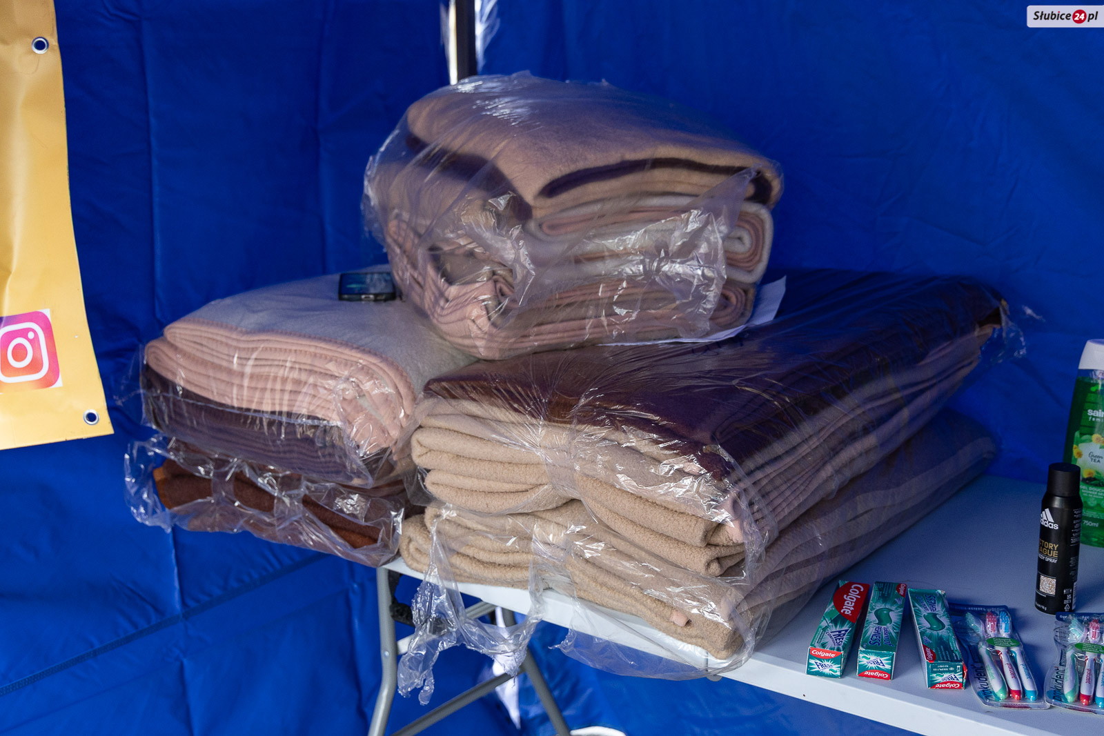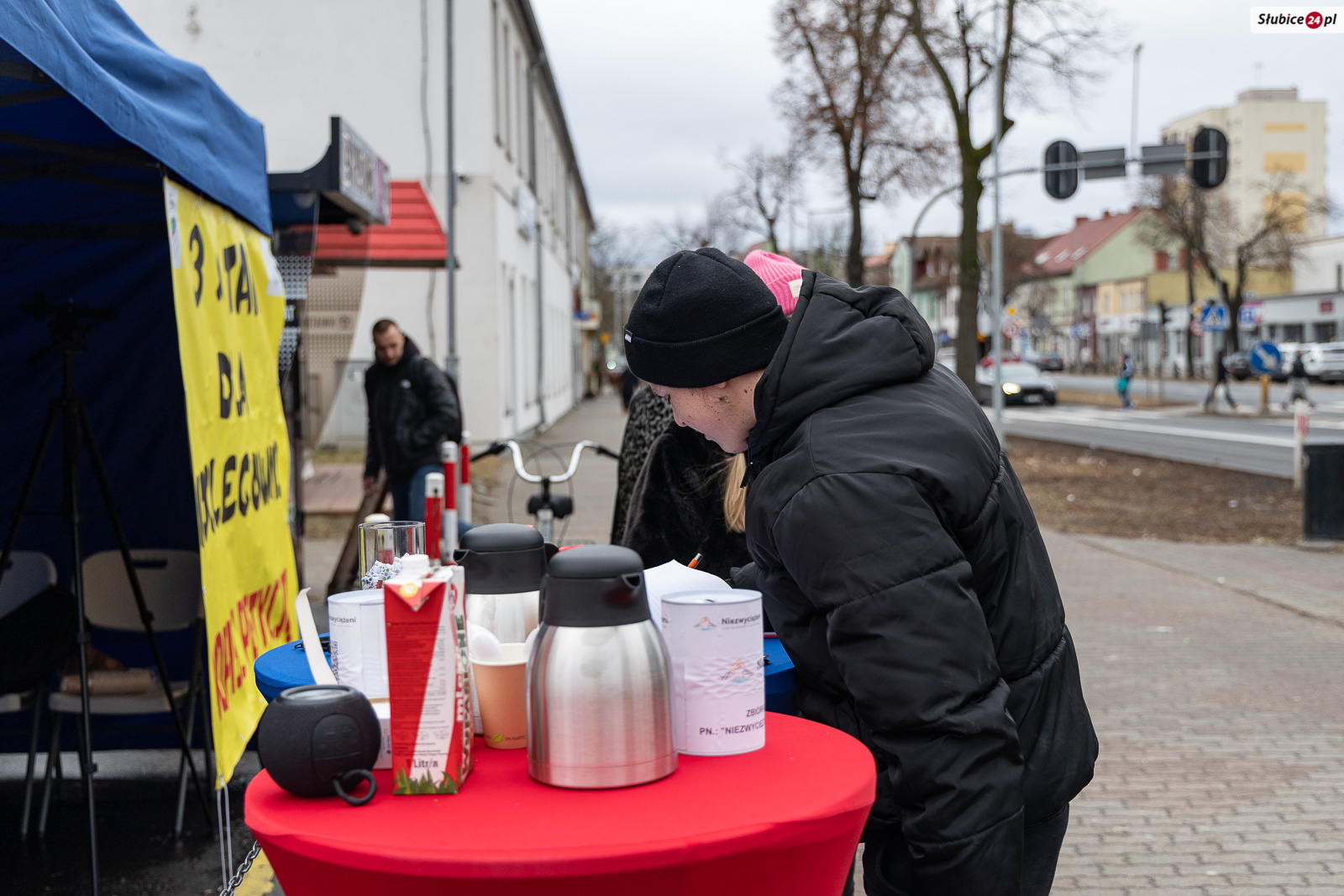 Podczas zbiórki podpisów organizatorzy przygotowali także wsparcie rzeczowe dla osób w potrzebie. Na miejscu dostępne są m.in. koce oraz artykuły higieniczne, które można odebrać lub przekazać potrzebującym. – Jeśli ktoś wie, że ma w swoim otoczeniu osobę, która potrzebuje pomocy, może podejść, wziąć takie rzeczy i po prostu jej je zanieść. Czasem to może być ktoś z sąsiedztwa, o kim wiemy, że jest w trudnej sytuacji – przekazał Robert Tomczak.