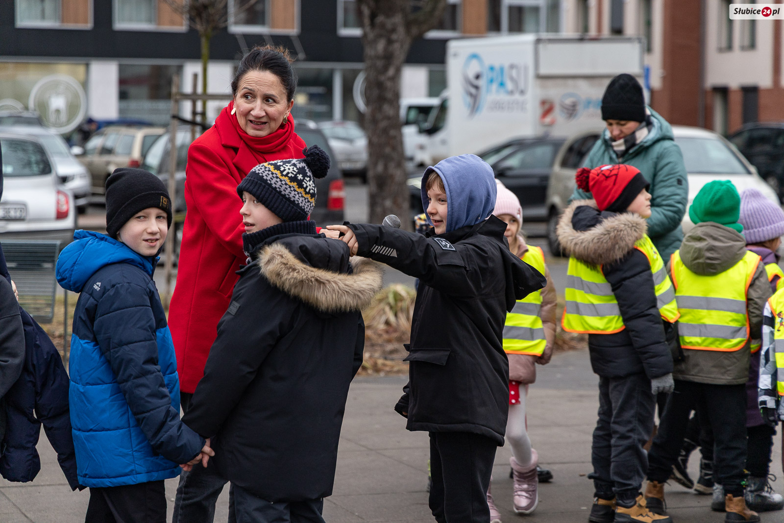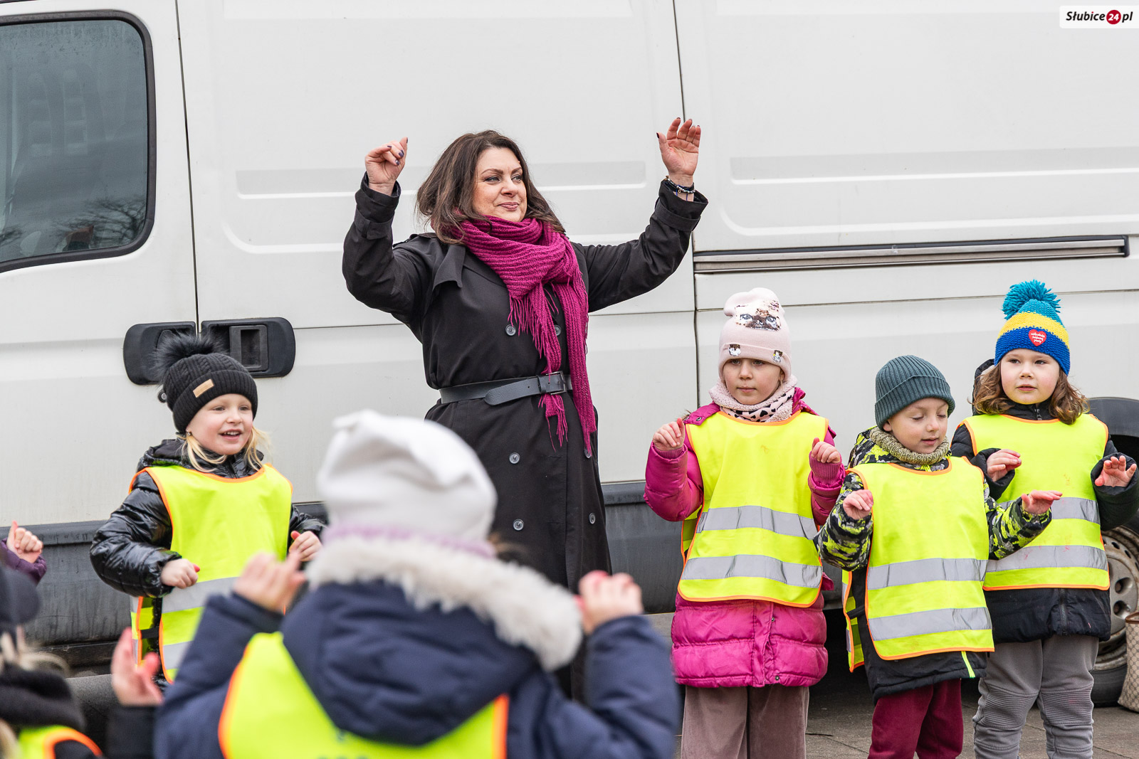 Były też wspólne zabawy ruchowe. Dzieci bawiły się przy muzyce i razem z burmistrzynią Słubic Marzeną Słodownik zatańczyły układ do znanej piosenki „Kaczuszki”. Najmłodsi otrzymali również czerwone odblaski w kształcie serc.