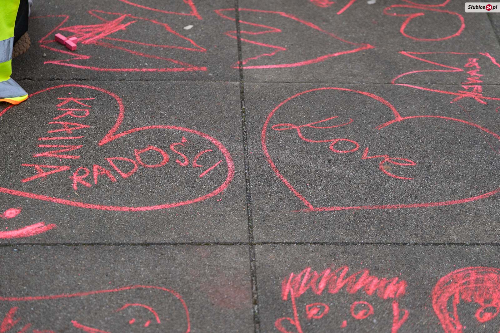 Walentynkową atmosferę dodatkowo podkreślały czerwone kredy, którymi dzieci rysowały serca i inne obrazki na placu. Nie zabrakło też miejsca na wspólne zdjęcia – specjalne plansze oraz duże serce z balonów cieszyły się dużym zainteresowaniem całych grup.