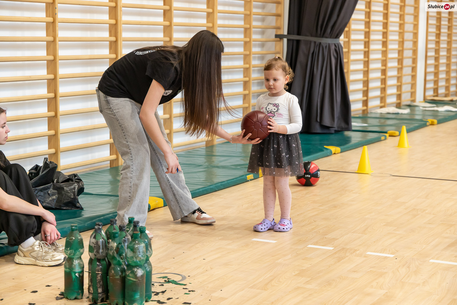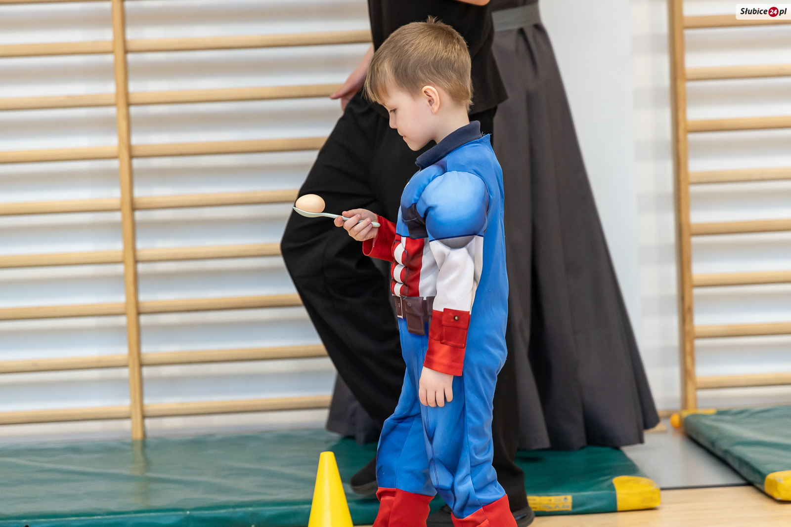 Nie zabrakło również części sprawnościowej. Kadeci z Centrum Kształcenia Zawodowego i Ustawicznego w Słubicach przygotowali tor przeszkód z zadaniami dla najmłodszych – m.in. rzucanie piłką do kręgli, czy slalom z jajkiem na łyżce. Druhowie z Ochotniczej Straży Pożarnej w Słubicach również zaprosili dzieci do wspólnej zabawy i prezentowali zwijanie węża strażackiego.