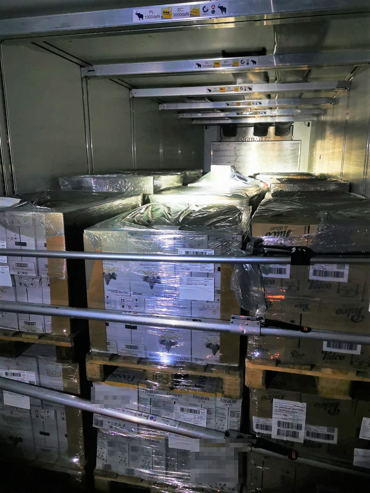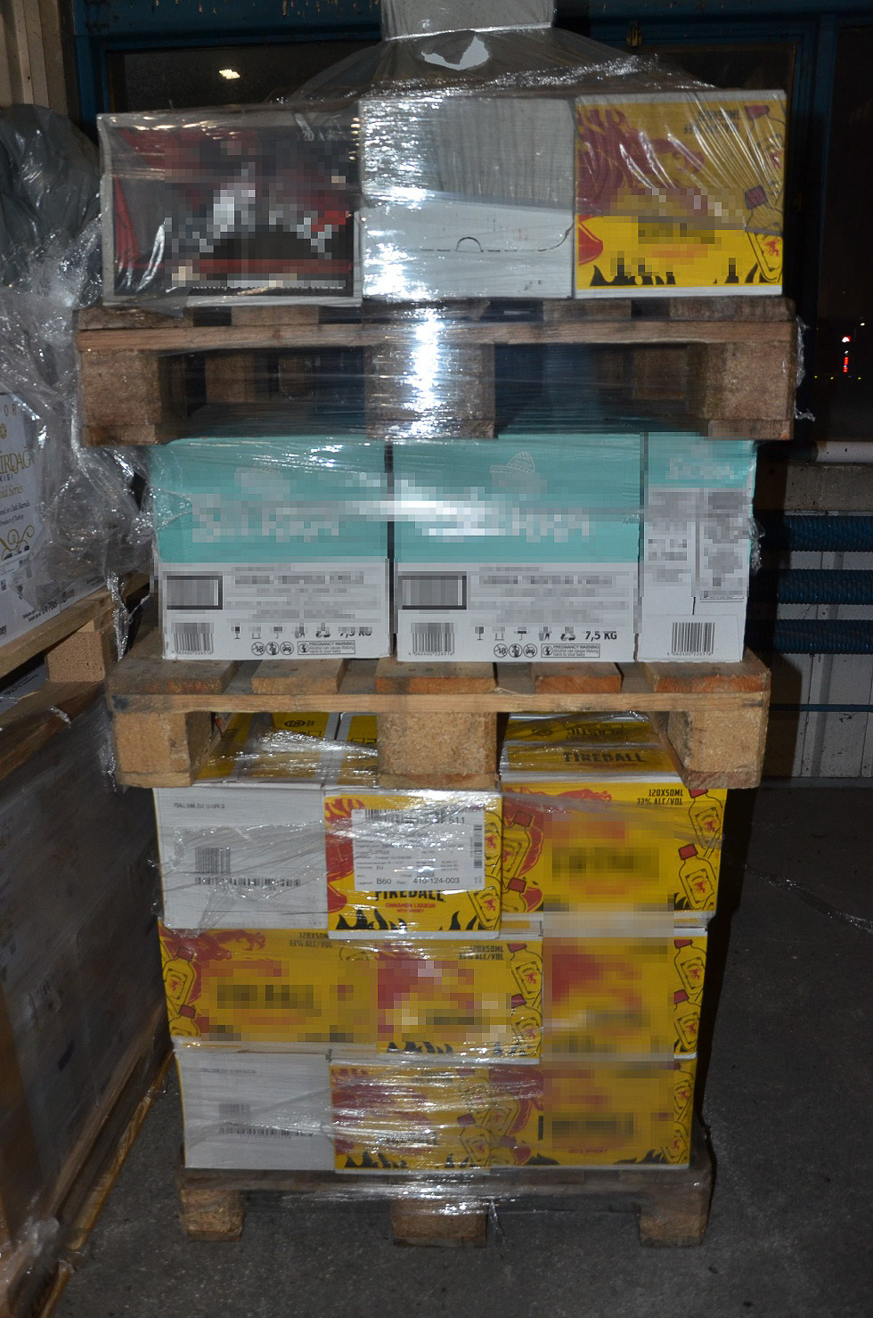Podczas dalszej kontroli strażnicy zajrzeli do przestrzeni ładunkowej. Znajdowały się tam palety z kartonami, w których – zgodnie z oznaczeniami – przewożono butelki alkoholu różnych marek i gatunków.