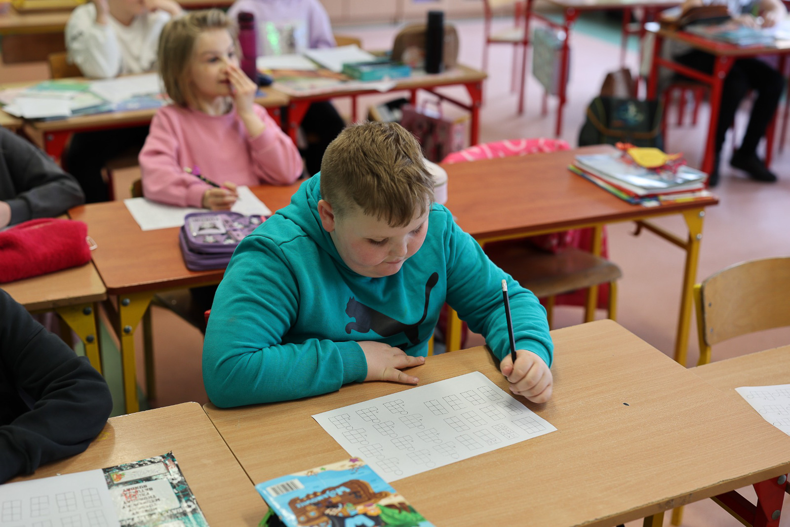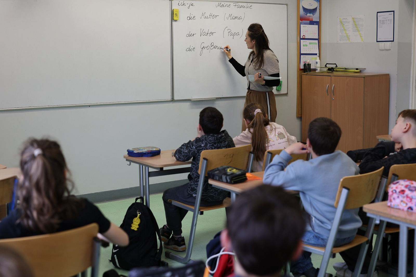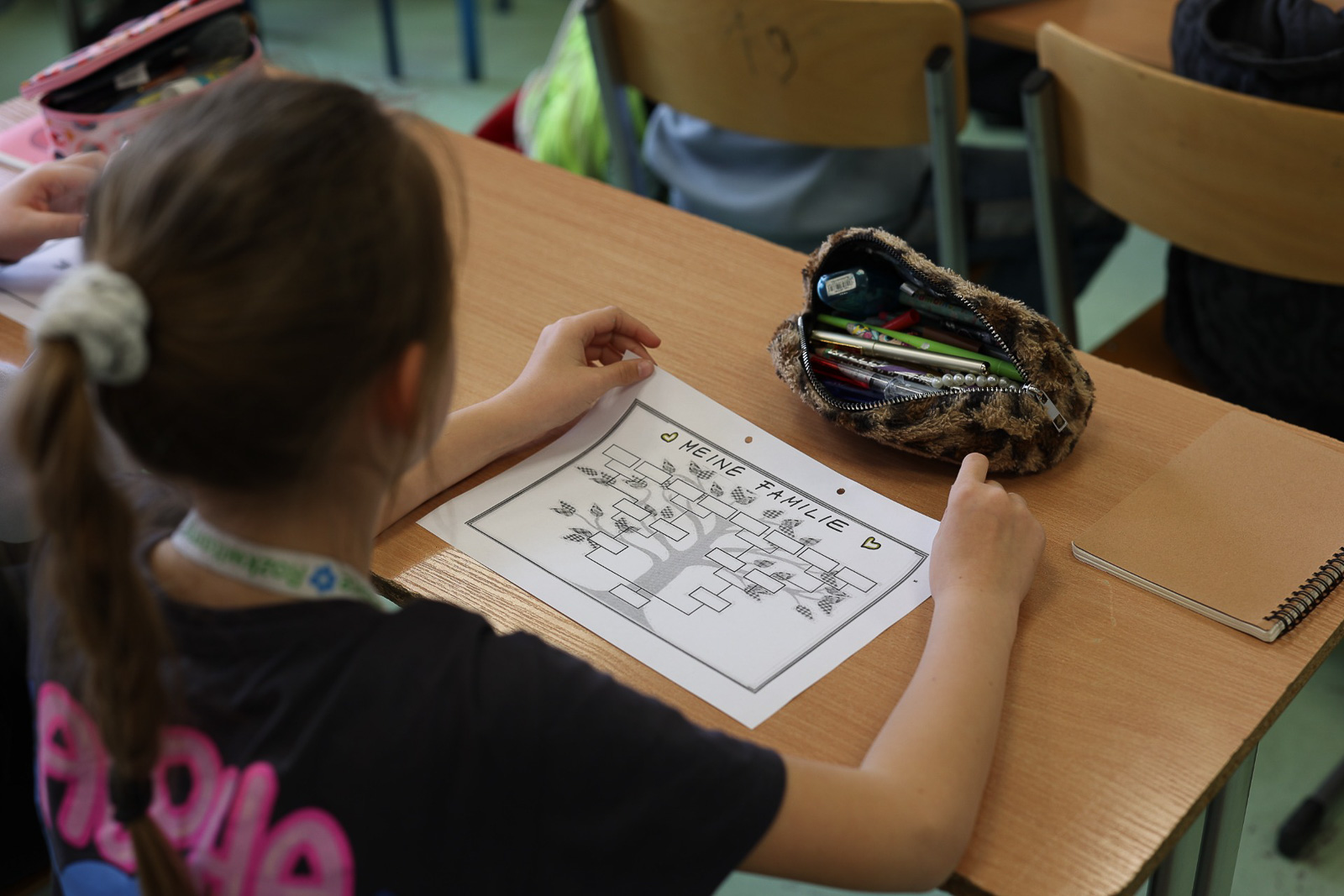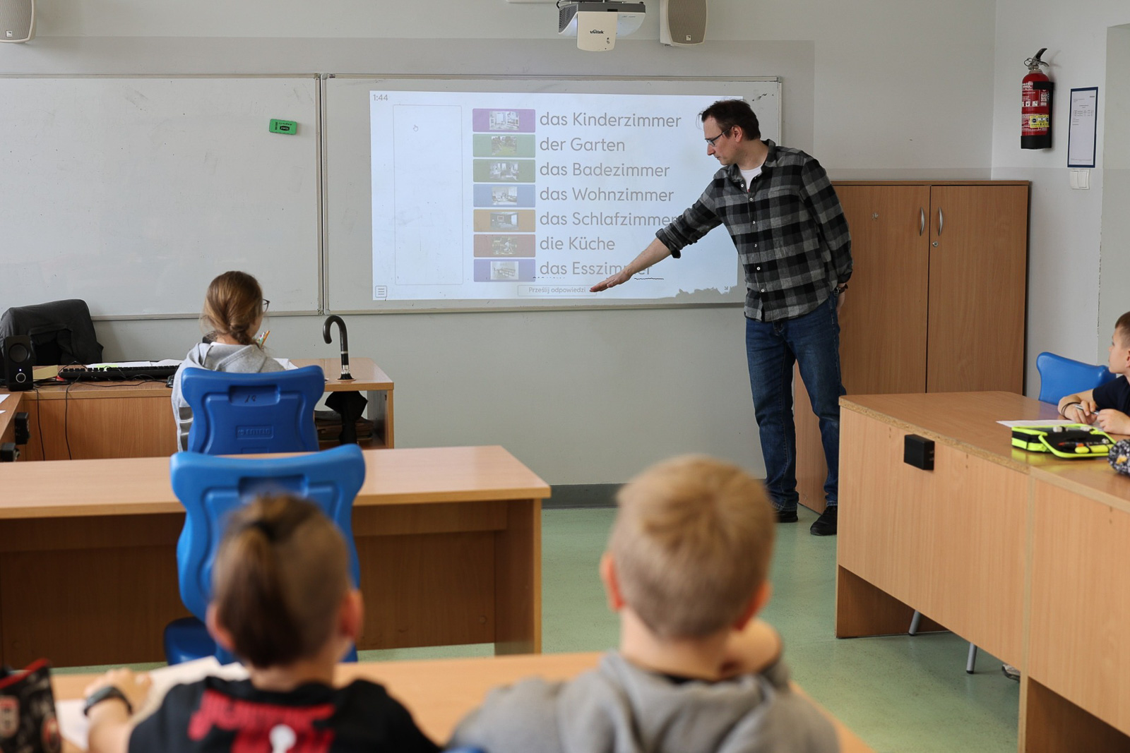 W Szkole Podstawowej nr 2 w Słubicach uczniowie podczas zajęć z języka niemieckiego poznawali kolory oraz nazwy miejsc i pomieszczeń, korzystając z kart pracy i quizu multimedialnego. Młodsza grupa ćwiczyła rozmówki i przygotowywała drzewo genealogiczne.