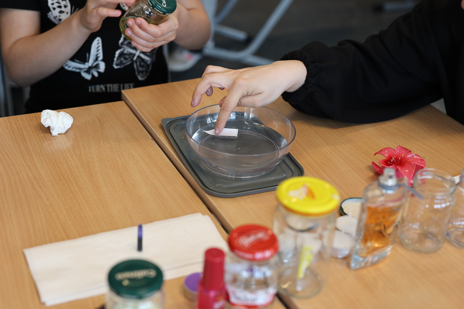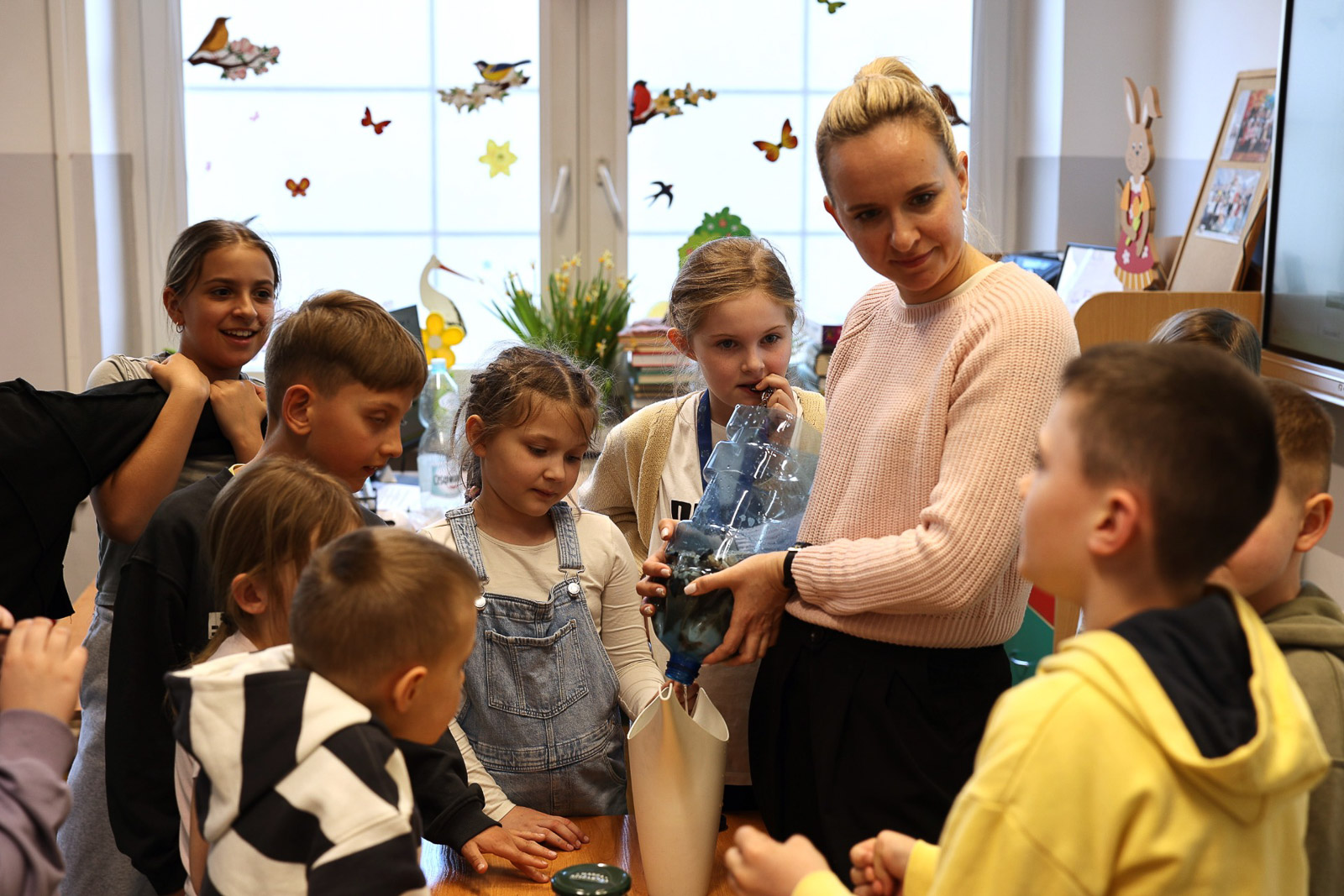 Z kolei w Golicach uczniowie prowadzili doświadczenia związane z właściwościami ciepłej i zimnej wody. Obserwowali m.in. rozpuszczanie, proces skraplania oraz tworzenie się menisku wypukłego.