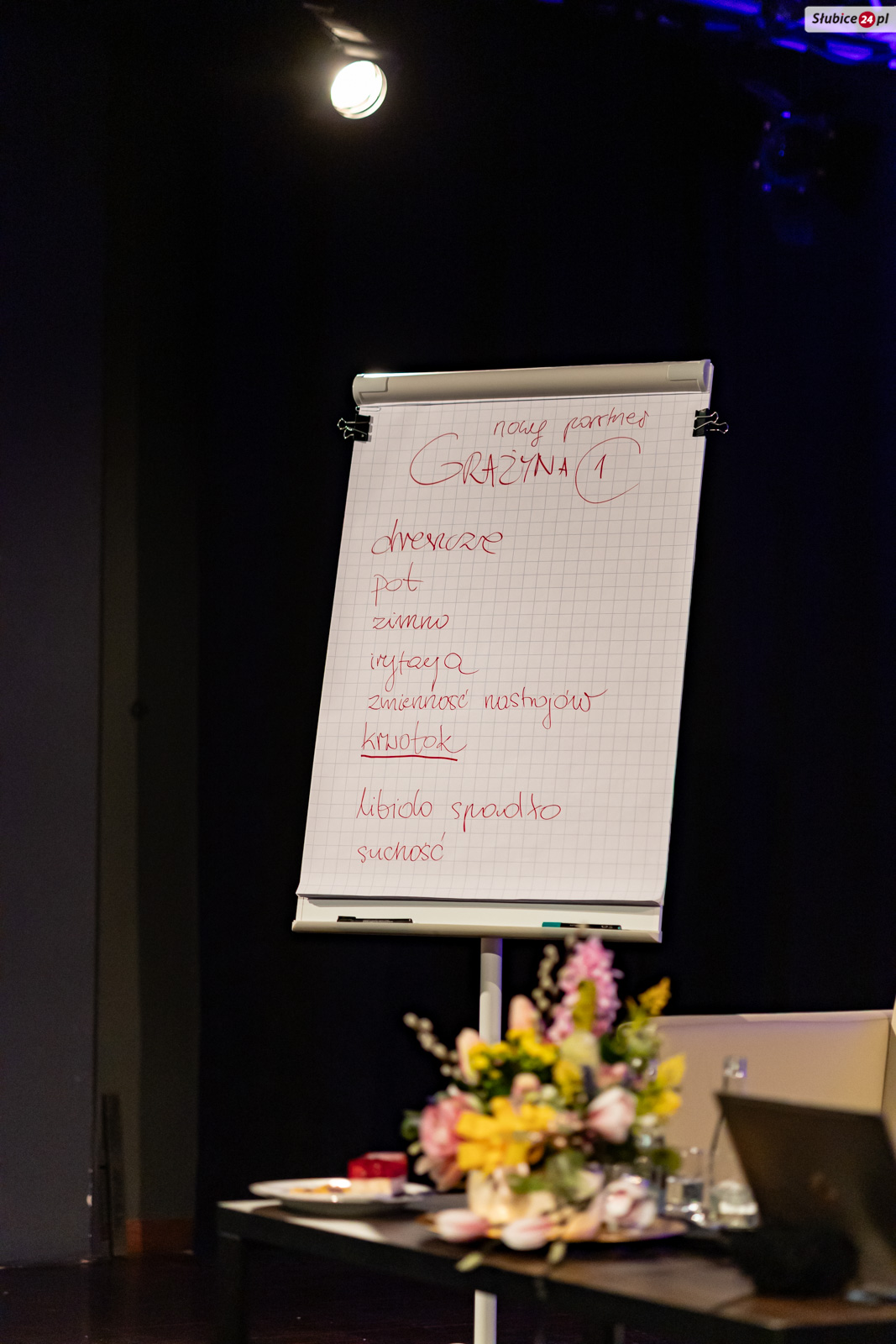 Nagrania rozmów zostały odtworzone podczas spotkania. Uczestniczki mogły usłyszeć różne doświadczenia – od trudnych objawów, takich jak uderzenia gorąca i wahania nastroju, po sytuacje, w których menopauza przebiegała niemal bezobjawowo. Równolegle na scenie prowadząca zapisywała pojawiające się symptomy i skojarzenia, co pozwoliło zobaczyć, jak różnorodne mogą być doświadczenia kobiet w tym okresie życia.