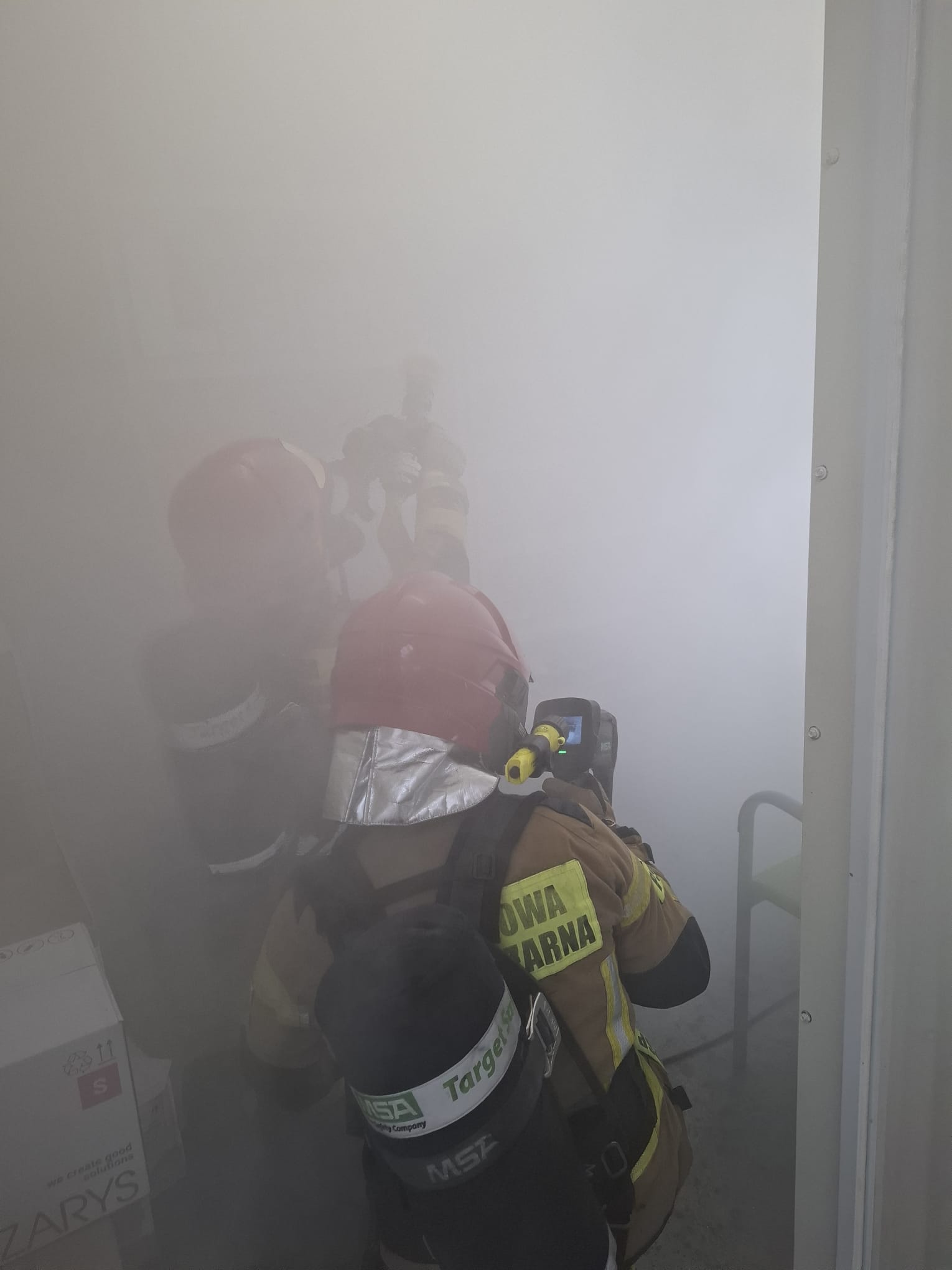 Strażacy w pełnym umundurowaniu i w butlach tlenowych weszli do zadymionego obiektu, z którego wydostali ranną osobę i udzielili jej pomocy. W trakcie akcji sprawdzono funkcjonowanie sprzętu i przećwiczono procedury, także te dotyczące dowodzenia.