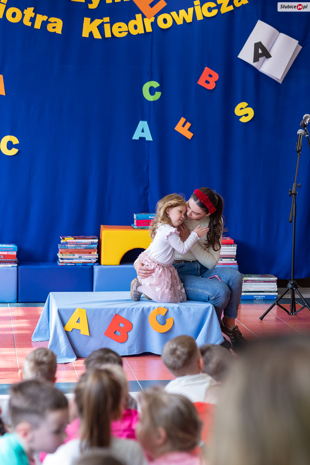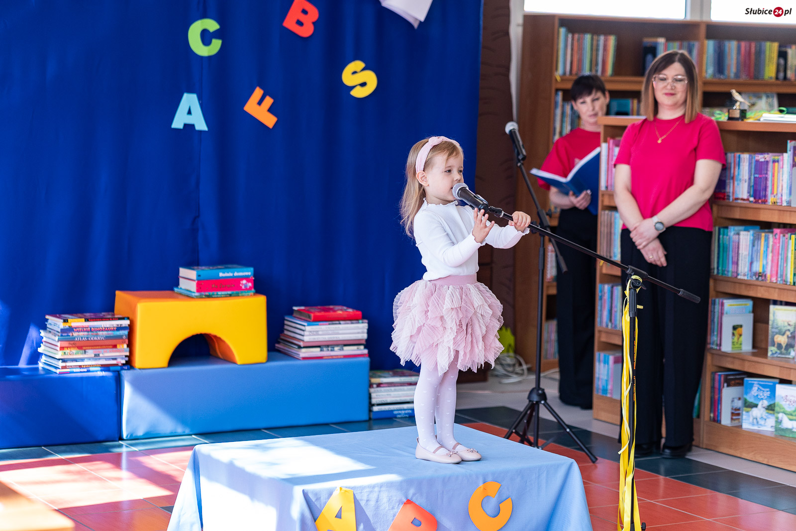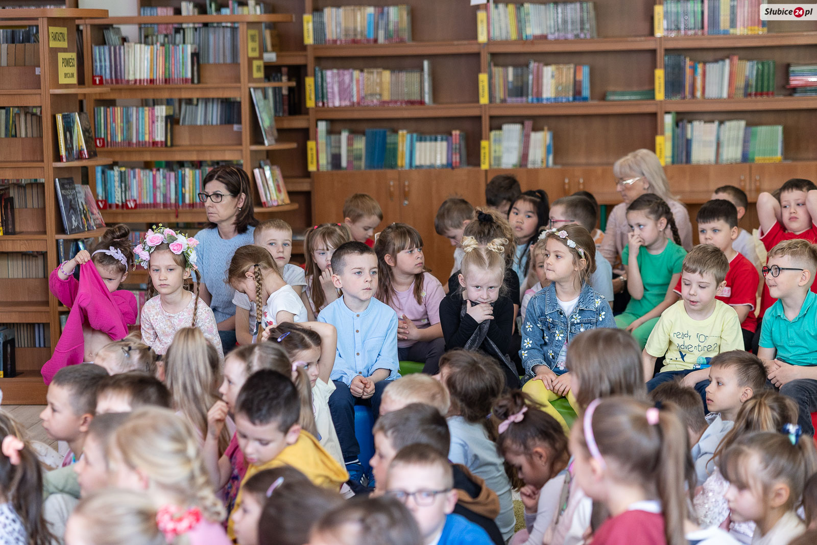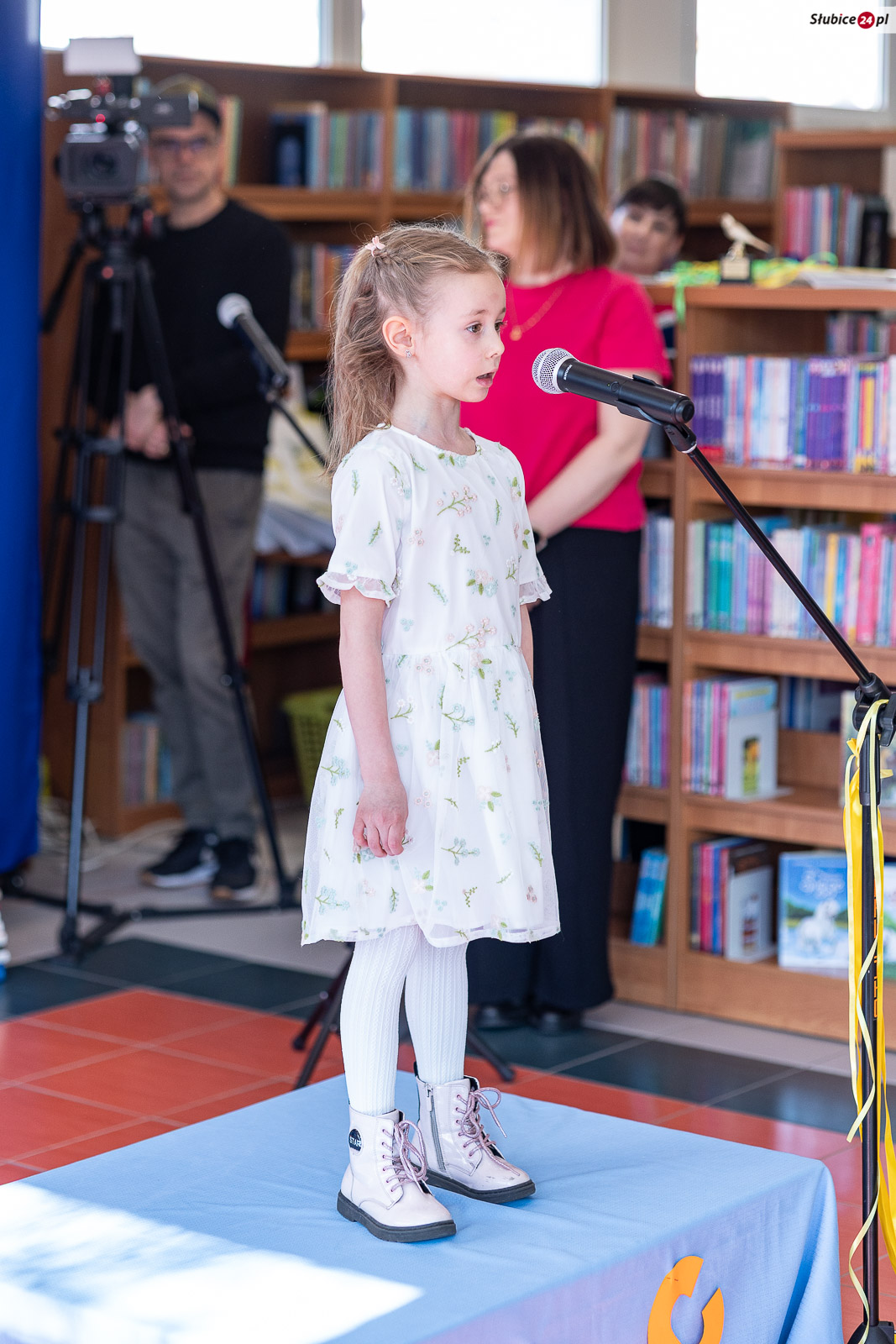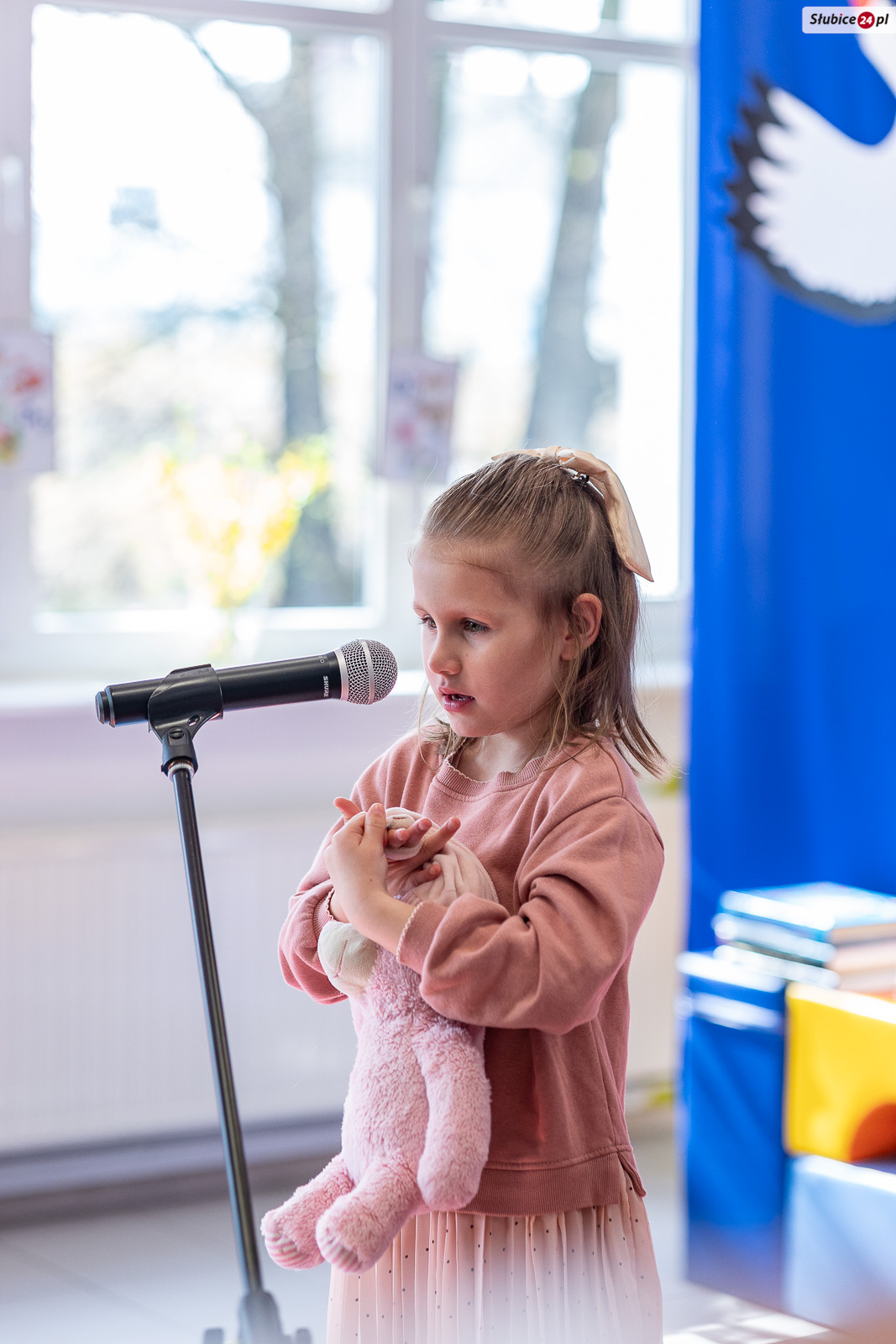 Występom przedszkolaków przysłuchiwała się także burmistrzyni Słubic Marzena Słodownik, która wspólnie z dyrektorką biblioteki Agnieszką Mińską wręczały maluchom nagrody i dyplomy. – Pan Piotr był i sportowcem, i artystą. Cieszę się, że możemy dzisiaj korzystać z jego dorobku – powiedziała burmistrzyni. Na sali był obecny również Marcin Kiedrowicz, syn poety, który przekazał zwyciężczyni nagrodę specjalną – jeden z ostatnich dostępnych egzemplarzy bajki pt. „Abecadło Tymka”.