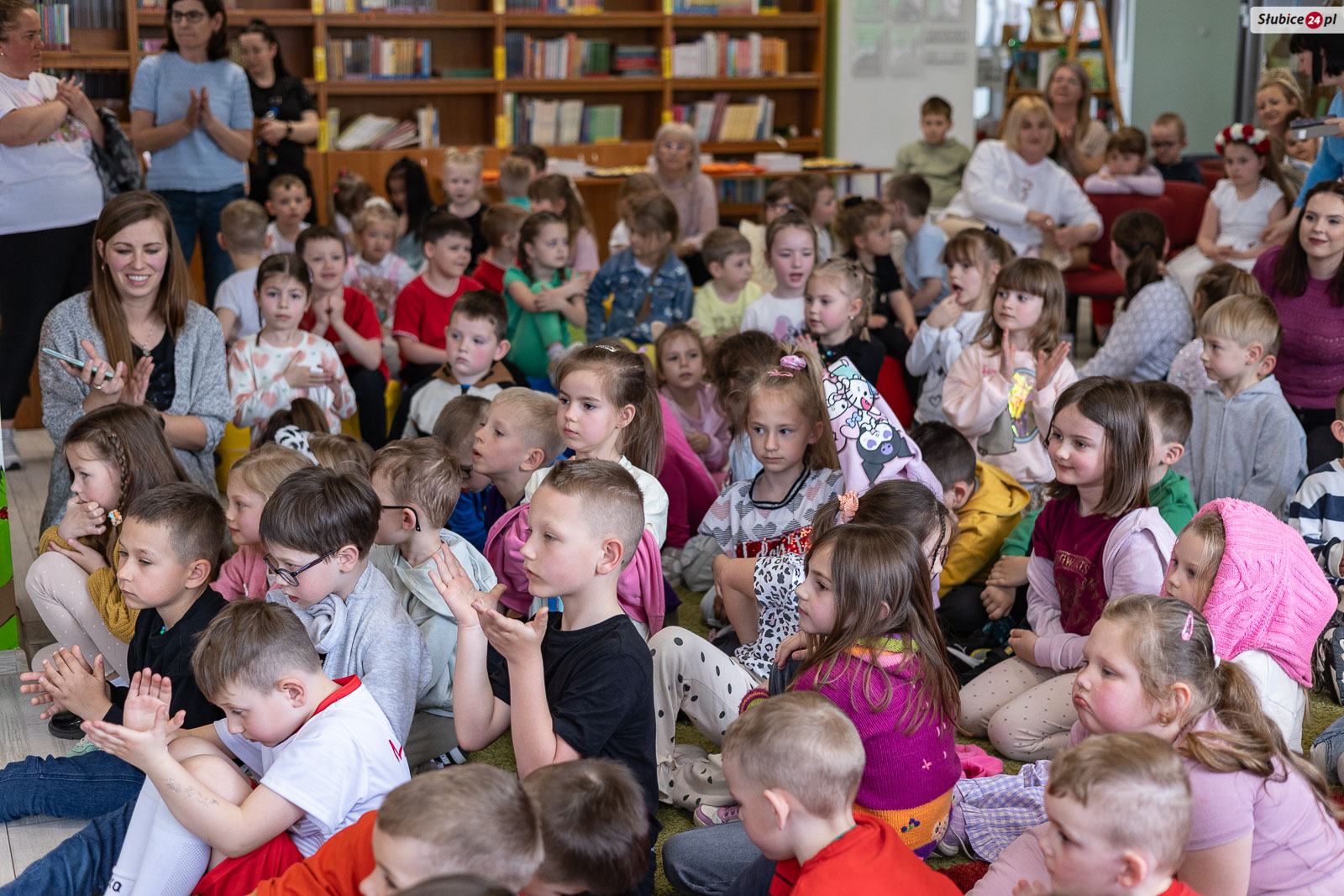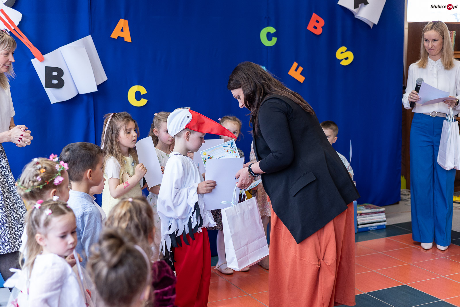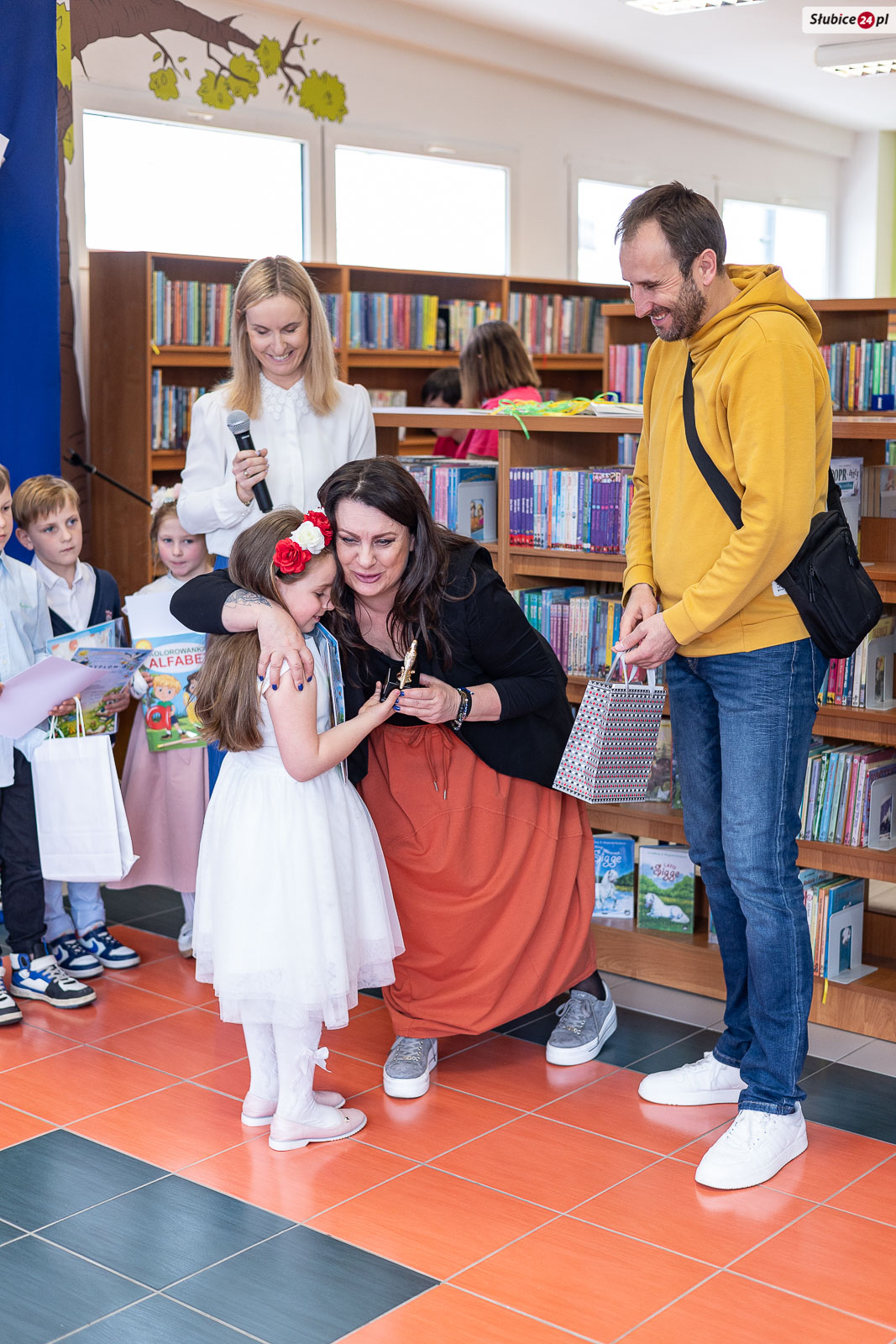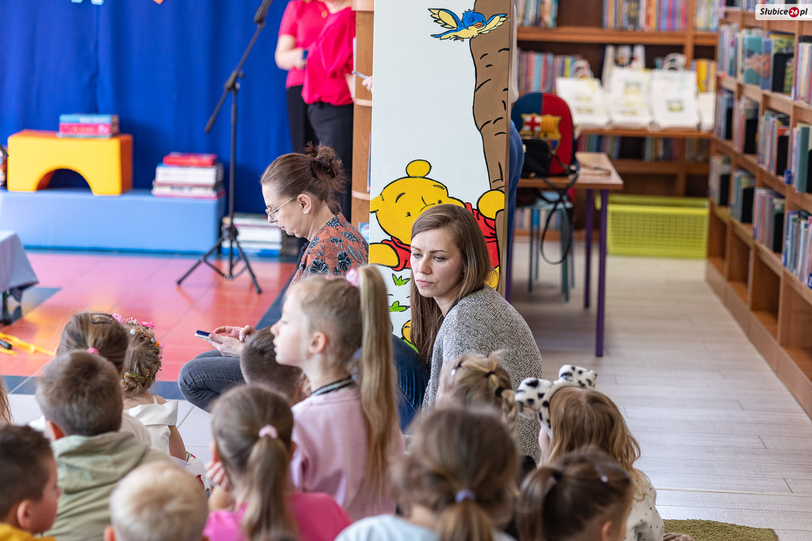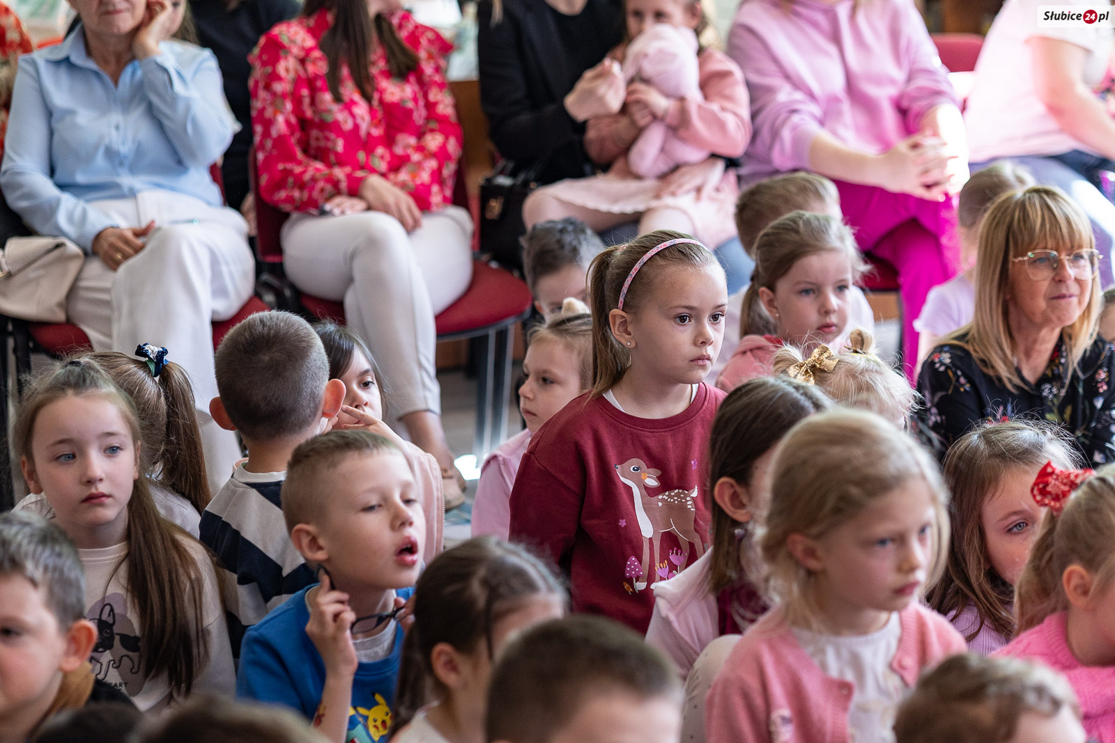 Występom przedszkolaków przysłuchiwała się także burmistrzyni Słubic Marzena Słodownik, która wspólnie z dyrektorką biblioteki Agnieszką Mińską wręczały maluchom nagrody i dyplomy. – Pan Piotr był i sportowcem, i artystą. Cieszę się, że możemy dzisiaj korzystać z jego dorobku – powiedziała burmistrzyni. Na sali był obecny również Marcin Kiedrowicz, syn poety, który przekazał zwyciężczyni nagrodę specjalną – jeden z ostatnich dostępnych egzemplarzy bajki pt. „Abecadło Tymka”.